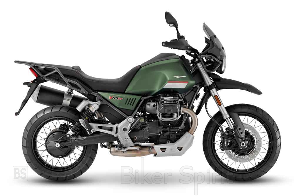 Η V85TT παρουσιάζεται σε τέσσερις εκδόσεις γραφικών, μαύρο “Nero Etna”, πράσινο “ Verde Altaj” και τις εντυπωσιακές διχρωμίες “Blu Uyuni” και “Giallo Mojave”. Η οικογένεια της classic enduro περιλαμβάνει επίσης τη V85TT Travel, που επεκτείνει περαιτέρω τις ταξιδιωτικές ικανότητες με πλούσιο εξοπλισμό, όπως ο ψηλός ανεμοθώρακας Touring, οι πλαϊνές βαλίτσες, το κεντρικό σταντ, τα θερμαινόμενα γκριπ αλλά και η πλατφόρμα πολυμέσων Moto Guzzi MIA. Τέλος η V85TT Guardia d’Onore είναι μια περιορισμένη και αριθμημένη έκδοση με αποκλειστική εμφάνιση και πλούσιο βασικό εξοπλισμό, που δημιουργήθηκε για να γιορτάσει τον ισχυρό δεσμό μεταξύ των Corazzieri, η διάσημη τιμητική φρουρά του Προέδρου της Ιταλίας, και των μοτοσυκλετών της μάρκας του Αετού από το Mandello.