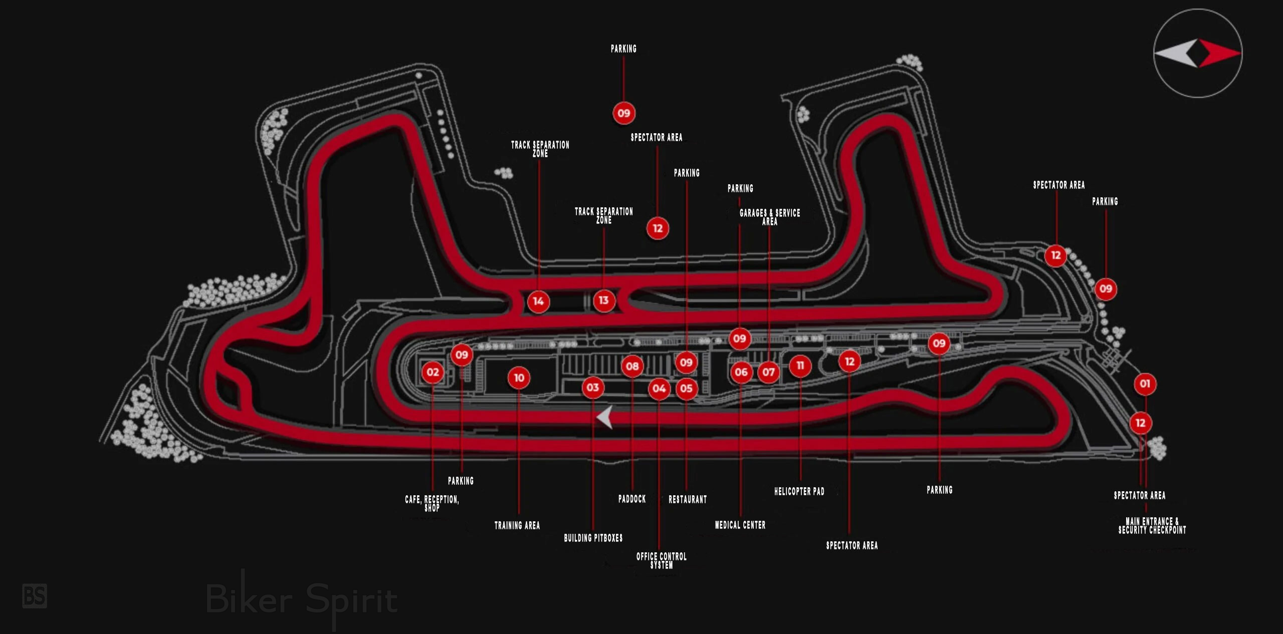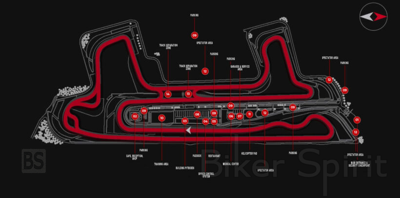 Η δυνατότητα διαχωρισμού της πίστας σε ανεξάρτητες ζώνες επιτρέπει τη διεξαγωγή δύο διαφορετικών δραστηριοτήτων ταυτόχρονα. Οι εγκαταστάσεις περιλαμβάνουν πλήρως εξοπλισμένα pit boxes, paddock άνω των 20.000 τ.μ., ιατρικό κέντρο και ελικοδρόμιο για επείγοντα περιστατικά.