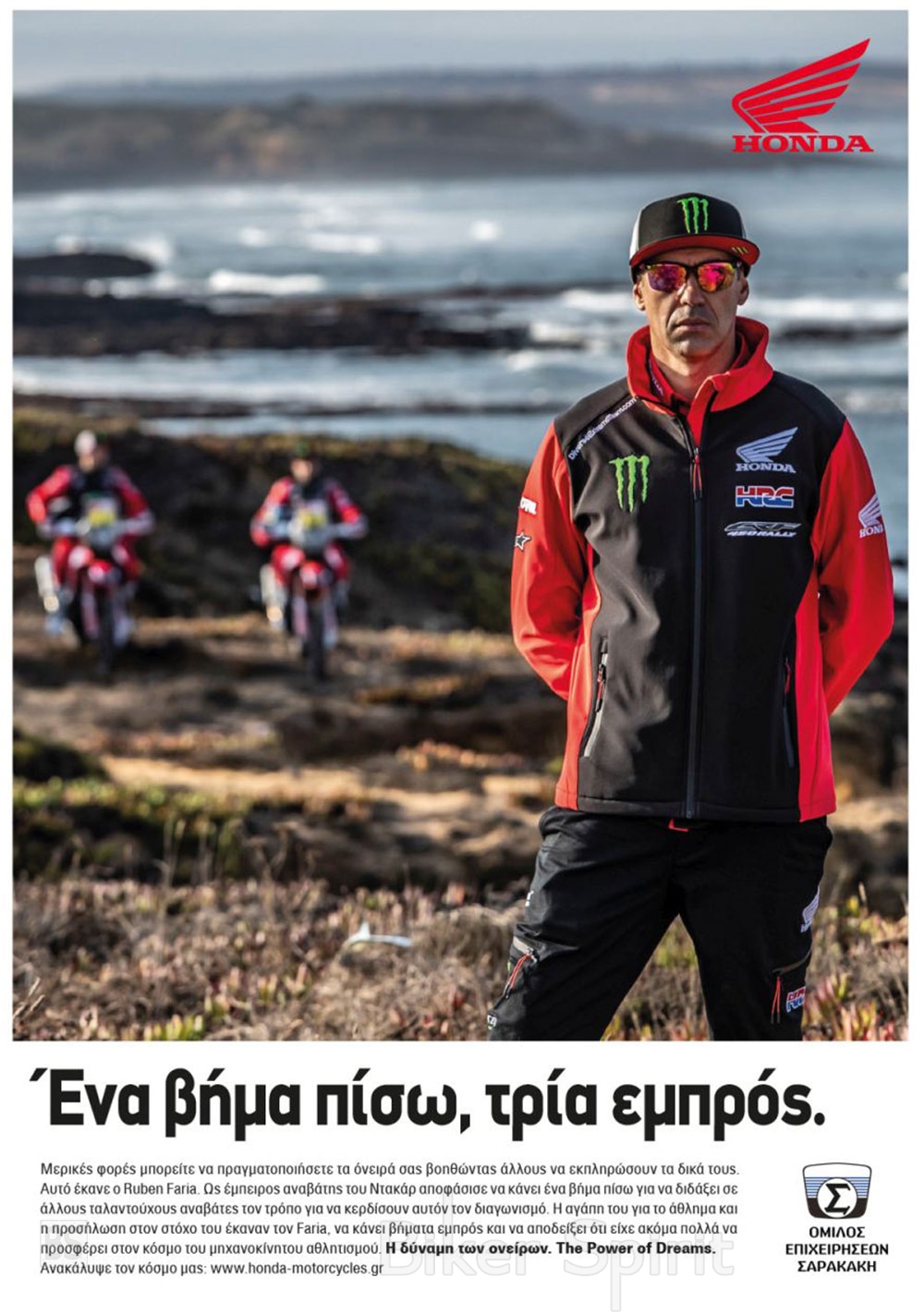Με τις φράσεις: «Αντί να φοβάσαι την αποτυχία, μη φοβάσαι τίποτα», «Μπορεί να είναι δύσκολο, για αυτό και το αγαπάμε» και «Ένα Βήμα πίσω, Τρία Εμπρός», οι Πρεσβευτές – Ambassadors της Honda Moto Marc Marquez, Ricky Brabec και Ruben Faria, αποτελούν το αντιπροσωπευτικότερο παράδειγμα των ανθρώπων εκείνων που πάλεψαν από μικροί για να κατακτήσουν τους στόχους τους και να πραγματοποιήσουν τα όνειρά τους. Η αποφασιστικότητά τους και η επιμονή τους μας εμπνέουν και μας ωθούν στο να συνεχίσουμε να πιστεύουμε στη δύναμη των ονείρων μας.