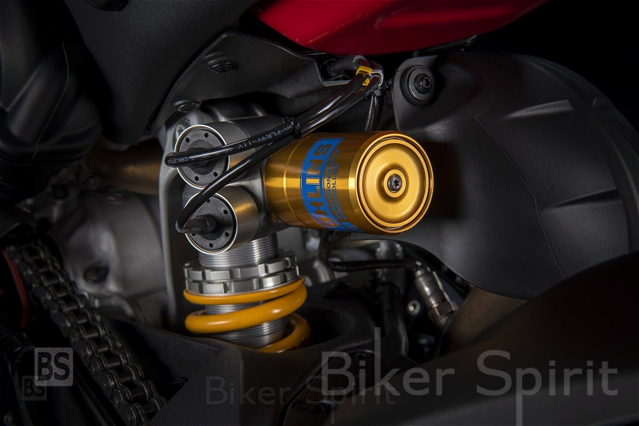 Το νέο πιρούνι έχει διαδρομή 125 χιλ. (+5 χιλ. σε σύγκριση με αυτό που εξοπλίζει την Panigale V4 2021), χάρη στο οποίο μπορεί όχι μόνο να υιοθετήσει πιο μαλακές ρυθμίσεις (η ακαμψία των ελατηρίων έχει πάει από 10 σε 9,5 N/χιλ.) βελτιώνοντας την ομαλότητα της απόκρισης ακόμη και σε ανώμαλη άσφαλτο και το κράτημα σε κρίσιμες συνθήκες. Το νέο πιρούνι λειτουργεί σε συνδυασμό με το πίσω αμορτισέρ Öhlins TTX36 και το αμορτισέρ τιμονιού Öhlins. Προσφέρει στον αναβάτη την ευκαιρία να ρυθμίσει την ανάρτηση σε διαφορετικές συνθήκες (φρένα/στροφές/επιτάχυνση) και να αλλάξει τις παραμέτρους λειτουργίας της, που σημαίνει μεγαλύτερη ασφάλεια στον δρόμο και καλύτερο γυρολόγιο στην πίστα.