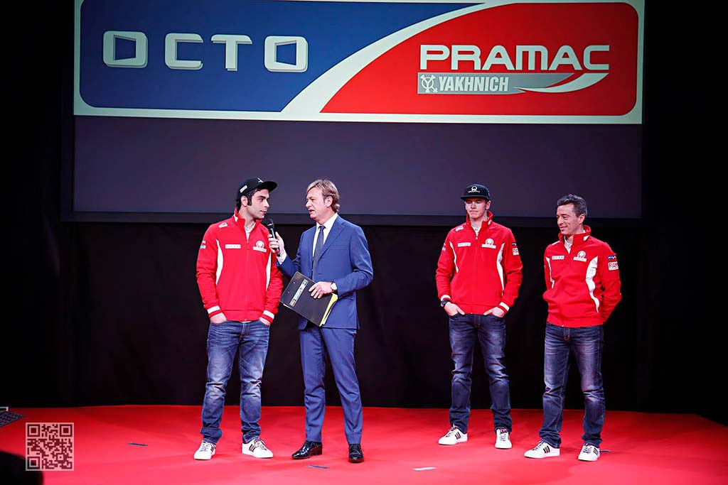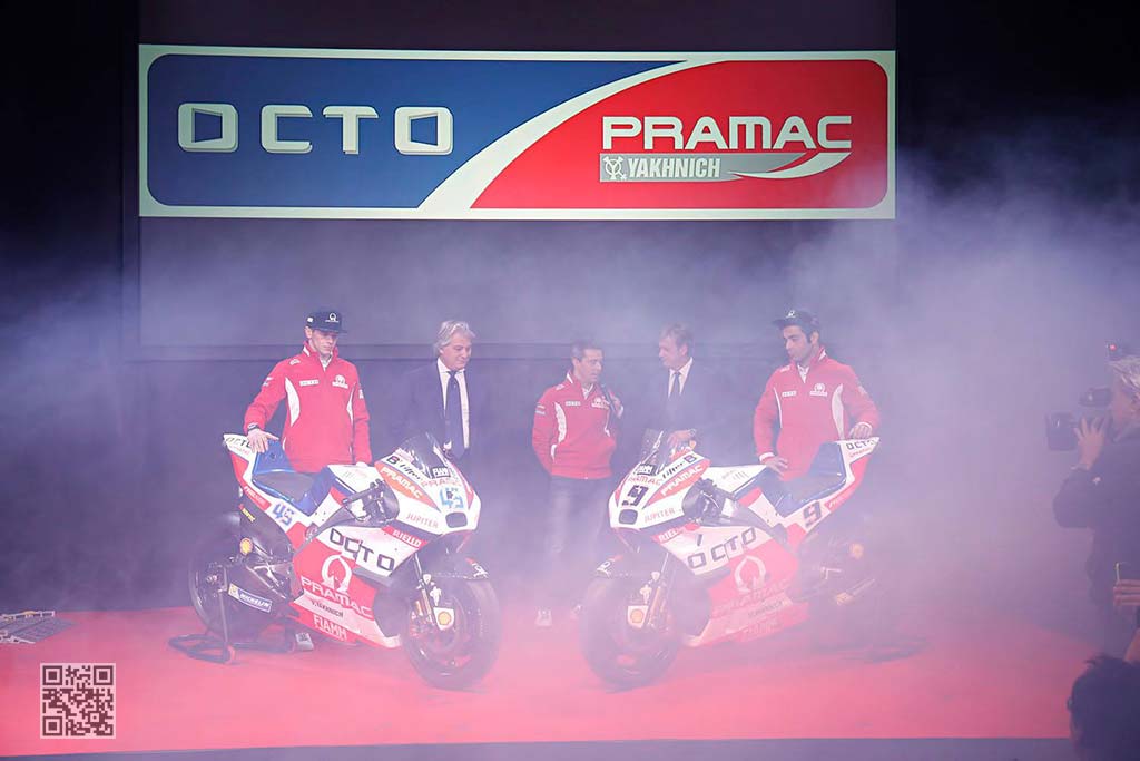 Κατά τη διάρκεια της εορταστικής εκδήλωσης, παρουσιάστηκαν οι δυο Ducati Desmosedici της Octo Pramac Yakhnich GP. Η ομάδα πέτυχε θετικά αποτελέσματα σε τεστ στην Jerez στο τέλος του 2015 και ο Danilo Petrucci και ο Scott Redding θα είναι οι οδηγοί της ομάδας για την σεζόν 2016.