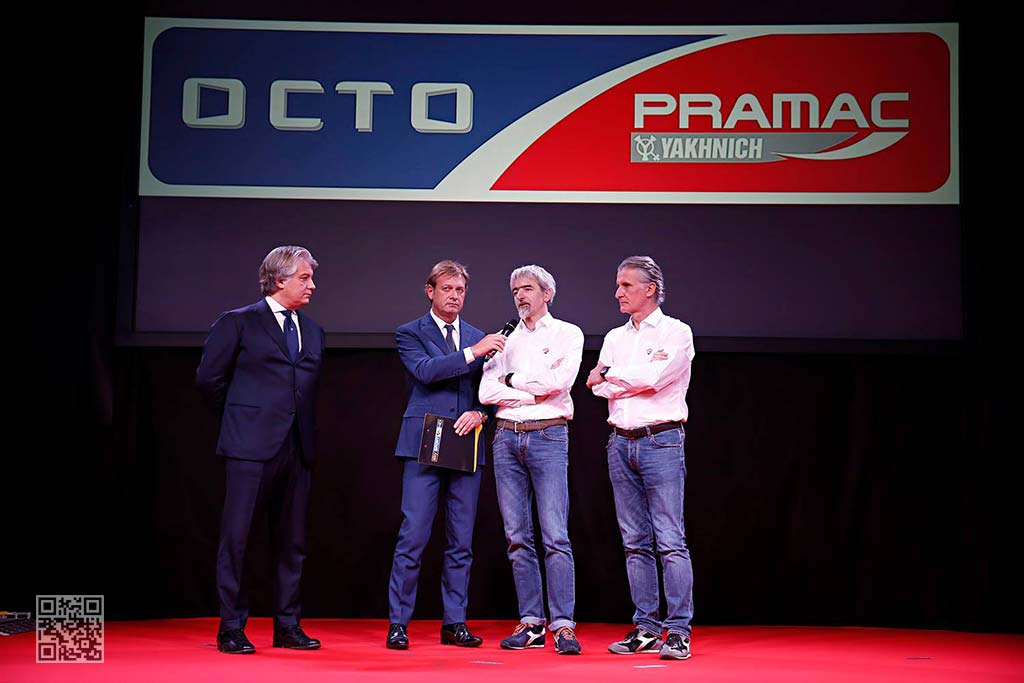 Ο Francesco Guidotti (Αγωνιστικός Διευθυντής Octo Pramac Yakhnich) ανάμεσα στα άλλα τόνισε : “Είναι ένα βράδυ γεμάτο συγκίνηση για μένα. Γιορτάζουμε τα 15 χρόνια της Pramac Racing και είναι ένα πραγματικά υπέροχο συναίσθημα. Οι Τεχνικοί κανονισμοί έχουν ανακατεύσει τα χαρτιά, οπότε μιλάμε για μια σημαντική εξέλιξη. Πρέπει να εργαστούμε σκληρά για αυτό. Αλλά αρχίζουμε με μεγάλο ενθουσιασμό, διότι μια μεγάλη πρόκληση βρίσκεται μπροστά μας.»