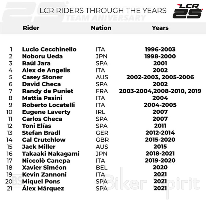 Η ομάδα LCR του Lucio Cecchinello γιορτάζει τη 25η επέτειό της στο Παγκόσμιο Πρωτάθλημα Ταχύτητας φέτος.