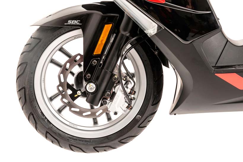 Με νέο τηλεσκοπικό πιρούνι και νέες ρυθμίσεις αμορτισέρ, το Speedfight 125 προσφέρει έναν ισορροπημένο συνδυασμό άνεσης και sport συμπεριφοράς, ενώ το σύστημα SBC (Synchro Braking Concept) διανέμει συγχρονισμένα τη δύναμη πέδησης στον εμπρός και τον πίσω τροχό, ενισχύοντας τα ήδη υψηλά επίπεδα ασφάλειας του scooter.