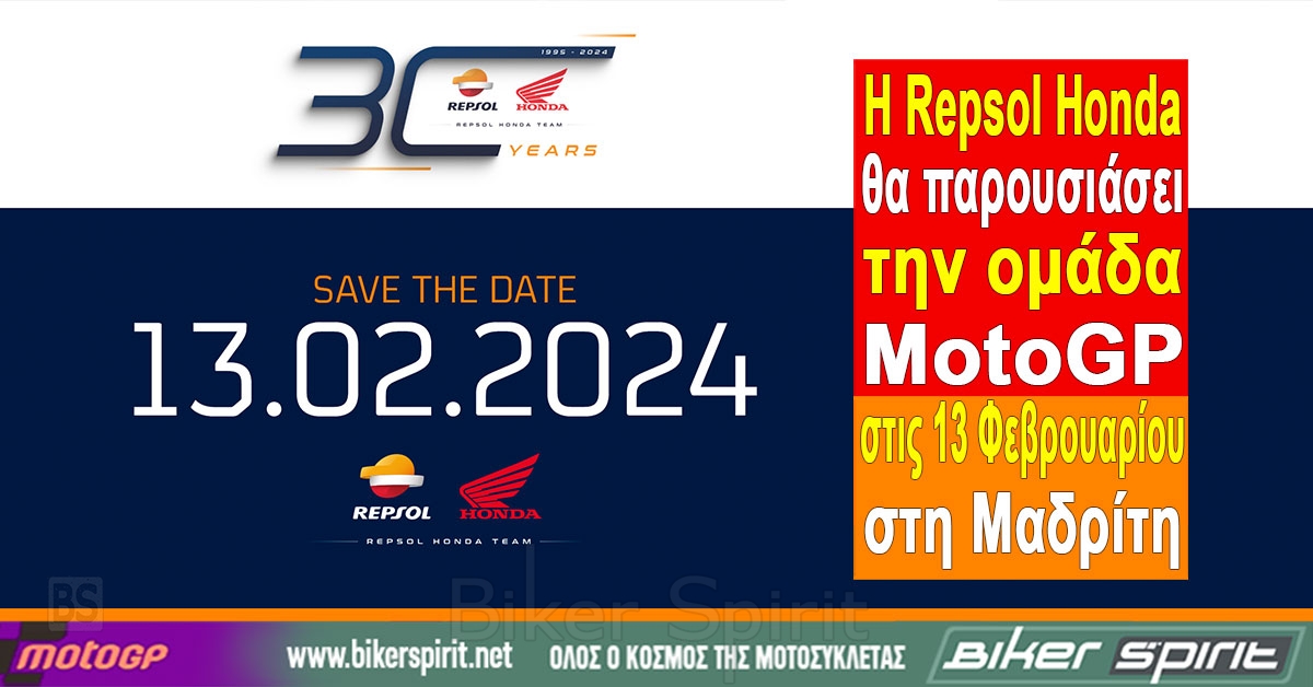 Η Repsol Honda θα παρουσιάσει την ομάδα MotoGP στις 13 Φεβρουαρίου στη Μαδρίτη