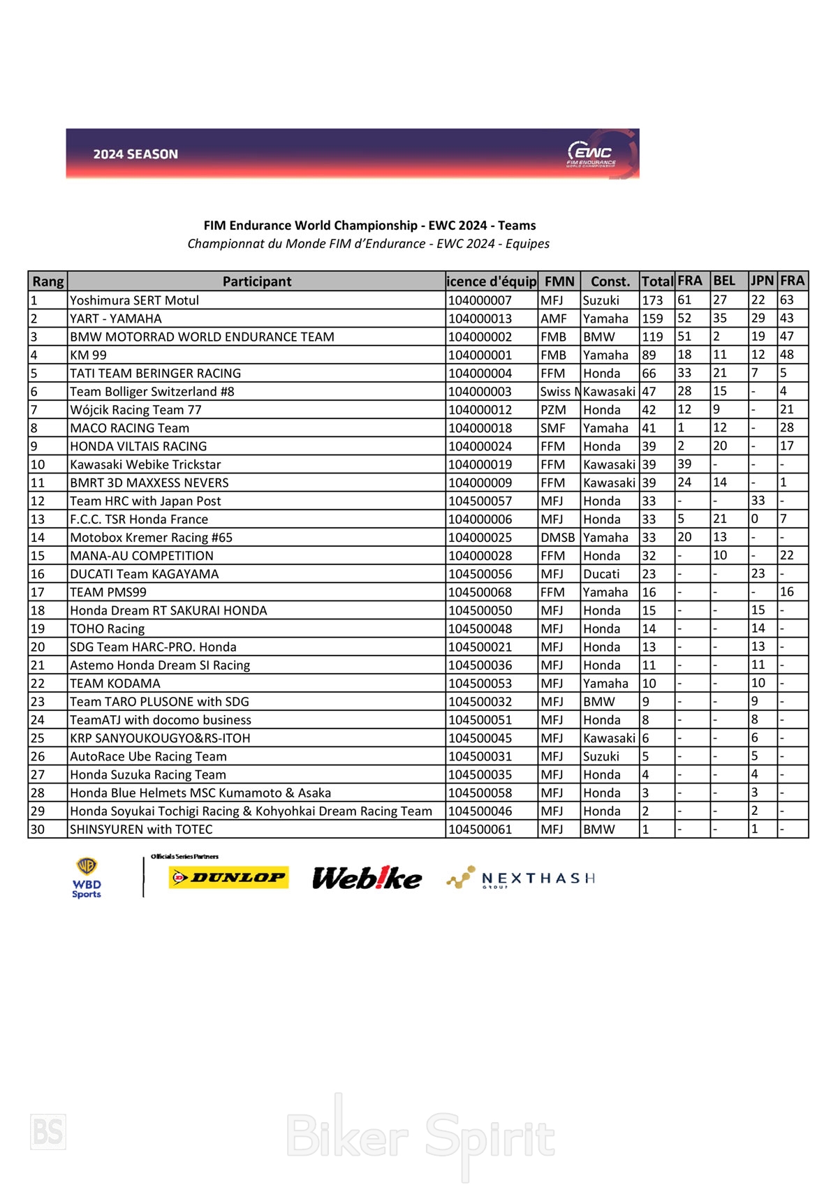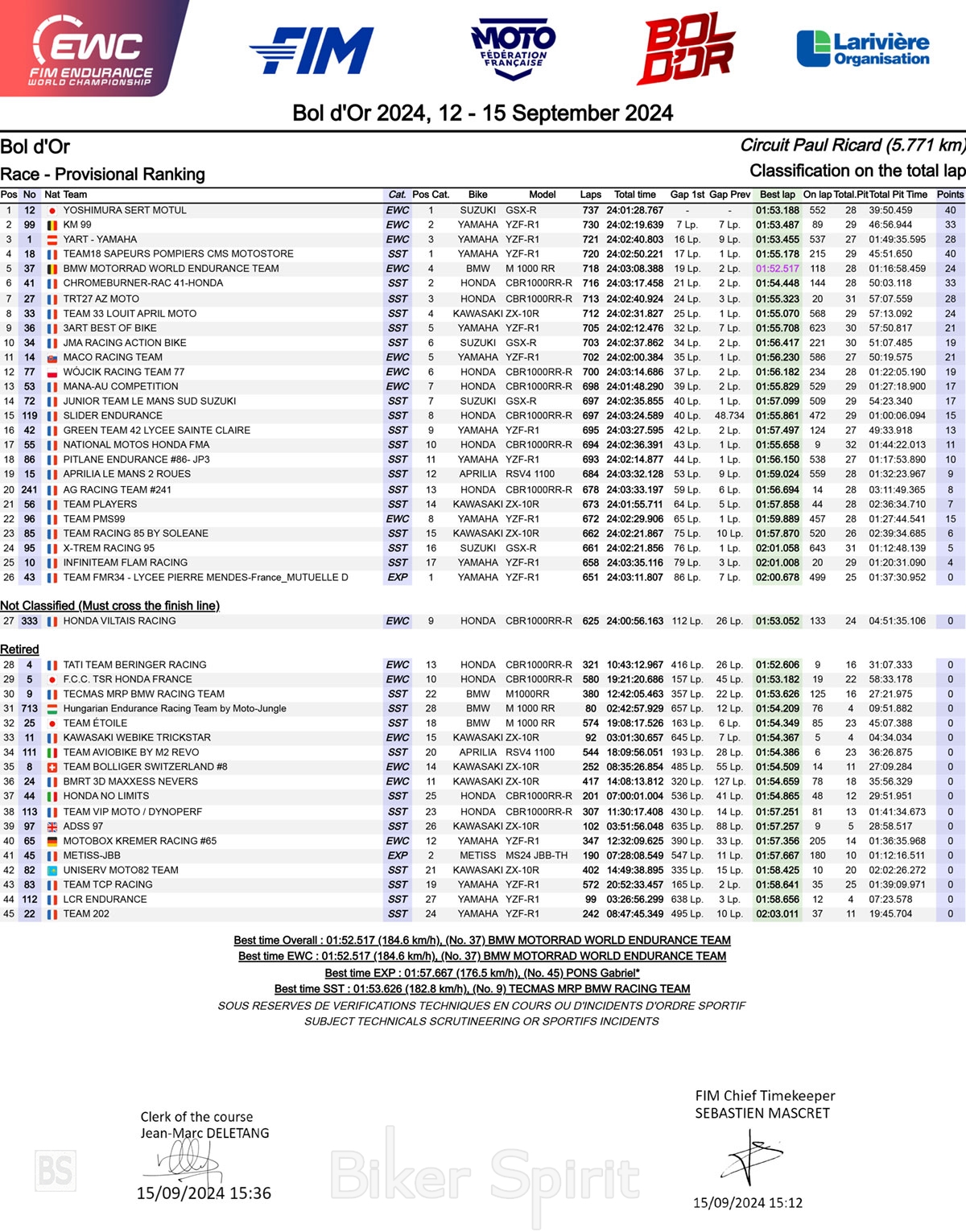 Η Suzuki Yoshimura SERT θριαμβεύει στο 24ωρο Bol d’Or 2024 και κερδίζει το Παγκόσμιο Πρωτάθλημα Αντοχής 2024 – Αποτελέσματα