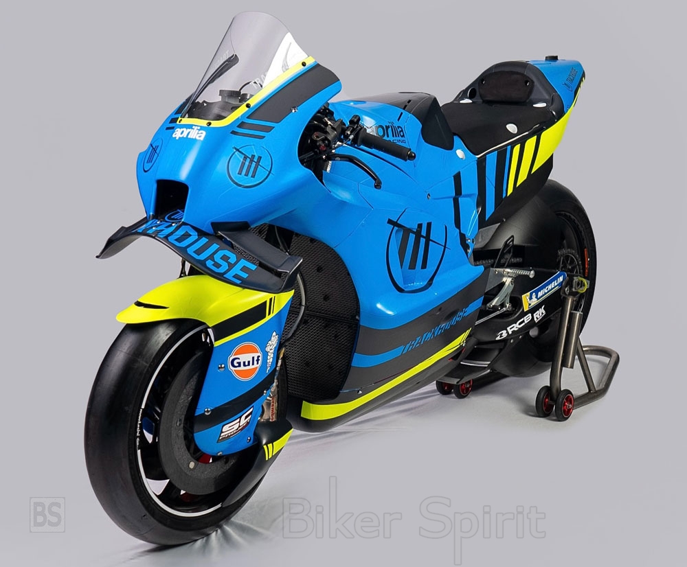 Η διακόσμηση του Aprilia RS GP διαθέτει ένα έντονο μπλε χρώμα, με μαύρες και κίτρινες γραμμές, καθώς και έναν νέο χορηγό, την εταιρεία πετρελαίου Gulf, η οποία, περισσότερο για την οικονομική της συμβολή στο έργο MotoGP, λάμπει ως μια εμβληματική μάρκα που έρχεται να δώσει μεγαλύτερη έμφαση στην ομάδα.