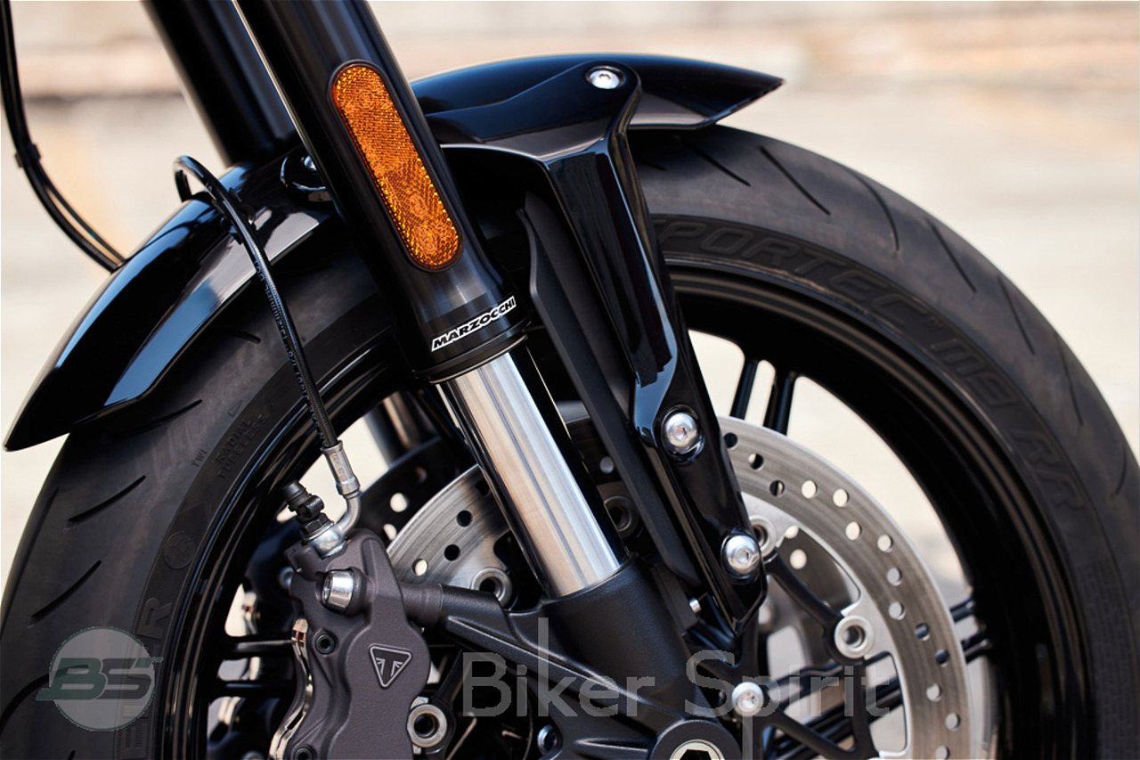 Διαθέσιμη στην Ελλάδα από τον Ιανουάριο του 2025, η νέα Speed Twin 1200 διαθέτει αναβαθμίσεις εξαρτημάτων, συμπεριλαμβανομένου του πιρουνιού Marzocchi και των διπλών πίσω αμορτισέρ Marzocchi, βελτιώνοντας περαιτέρω τη γεμάτη αίσθηση και δυναμισμό οδική συμπεριφορά, καθιστώντας το στρίψιμο ισορροπημένο, φυσικό και σίγουρο.