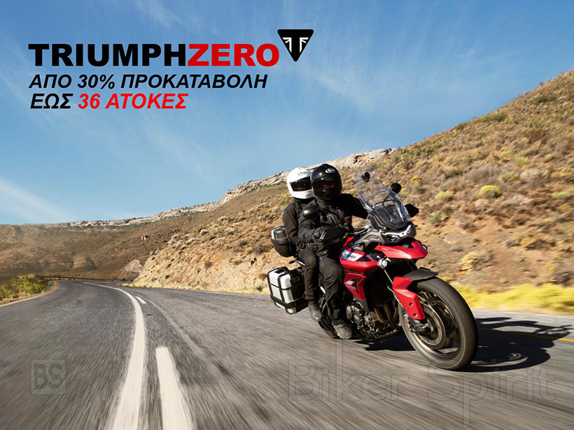 Η Triumph κάνει τη μεγάλη έκπληξη με το ΑΤΟΚΟ χρηματοδοτικό TRIUMPHZERO σε ΟΛΑ τα μοντέλα της!