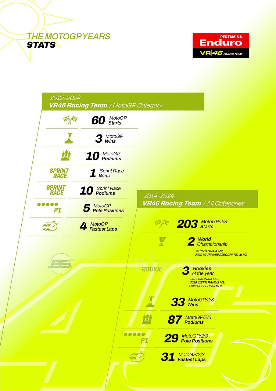Το 2025 είναι η τέταρτη σεζόν της VR46 στο MotoGP, οι οποίες ήταν όλες με τη Ducati και ο δεύτερος χρόνος χορηγίας τίτλου της Pertamina.