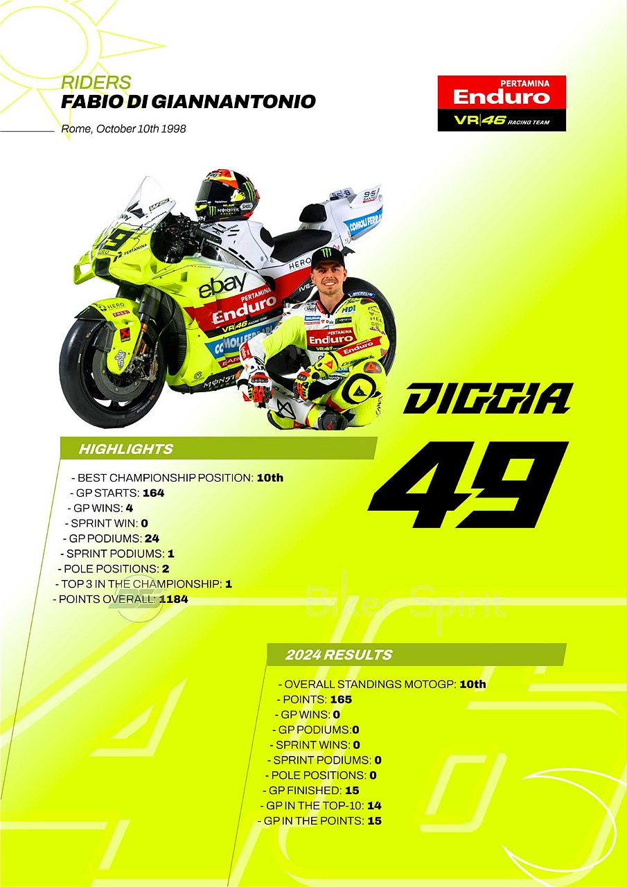 Το 2025 υπόσχεται να είναι μια πολύ ενδιαφέρουσα χρονιά για την VR46, αφού, η ομάδα έχει γίνει ‘factory supported’, δηλαδή η δορυφορική ομάδα αναφοράς για το Borgo Panigale. Μαζί με την εργοστασιακή ομάδα, η VR46 θα είναι η μόνη που θα έχει GP25 στο γκαράζ του.