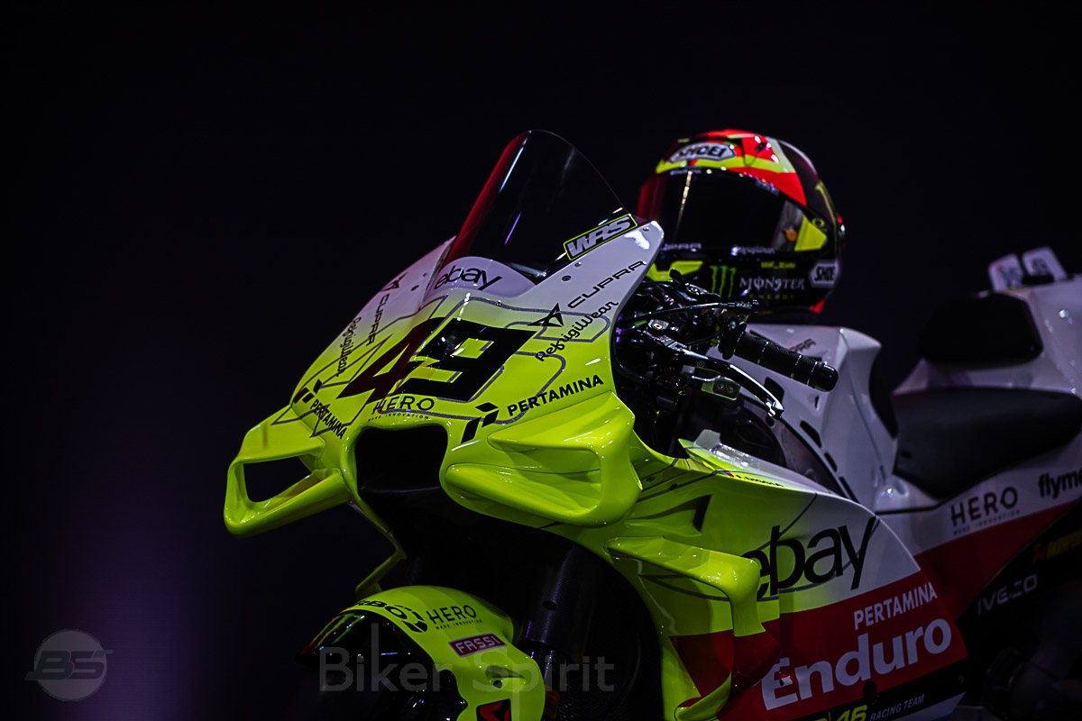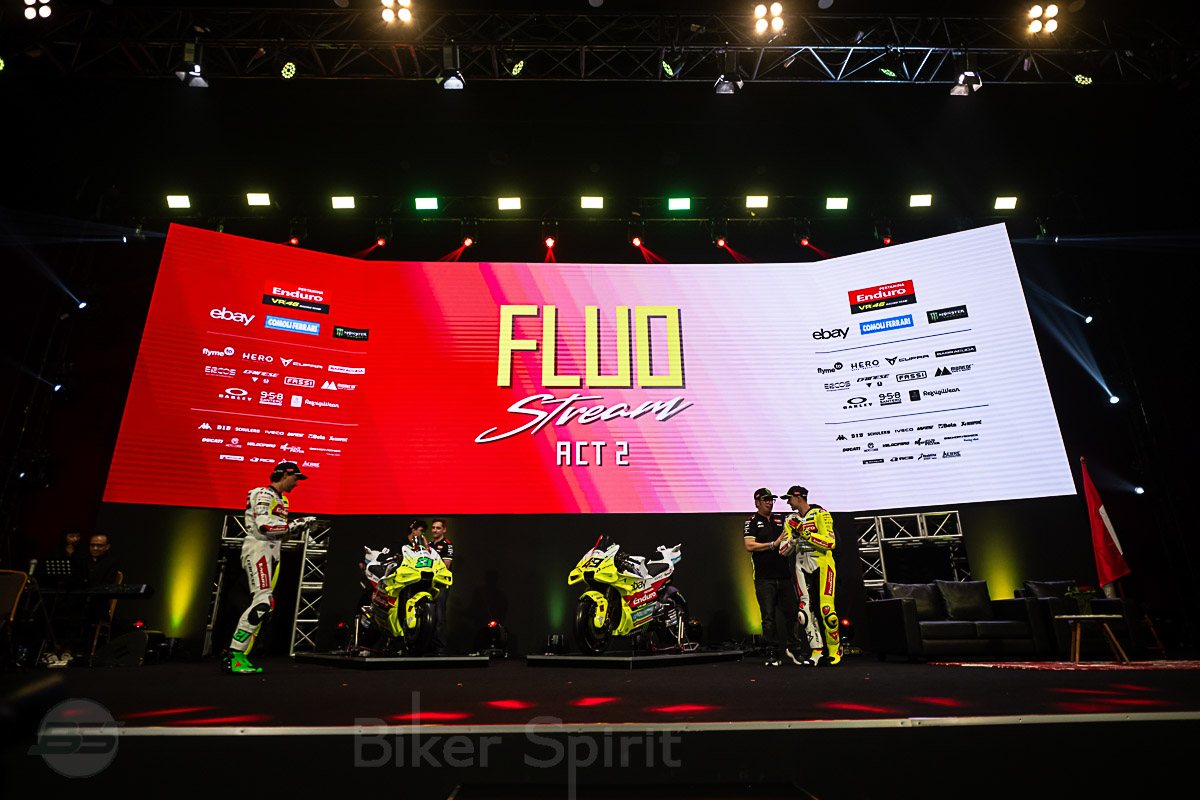 Ο Fabio Di Giannantonio και ο Franco Morbidelli παρουσίασαν το Fluo Stream Act 2 αποκαλύπτοντας το Ducatis Desmosedici GP που έχει μερικές συμβολικές λεπτομέρειες φέτος. Το κίτρινο Fluo επιστρέφει και κυριαρχεί μαζί με το λευκό χρώμα, όλα σχεδιασμένα από τους Aldo Drudi και Drudi Performance.
