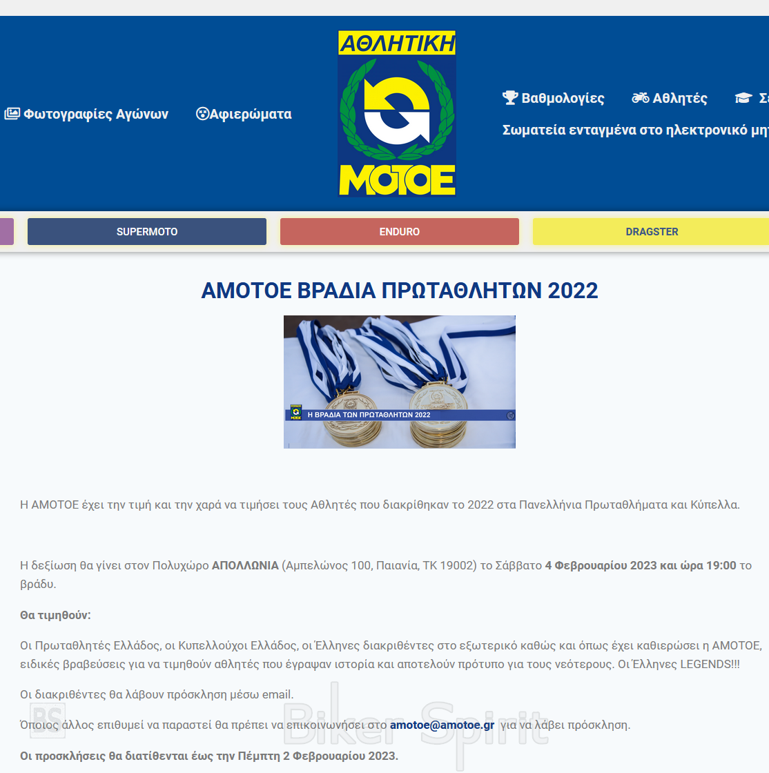 Η ΑΜΟΤΟΕ ανακοίνωσε τη Βραδιά των Πρωταθλητών για τους διακριθέντες του 2022