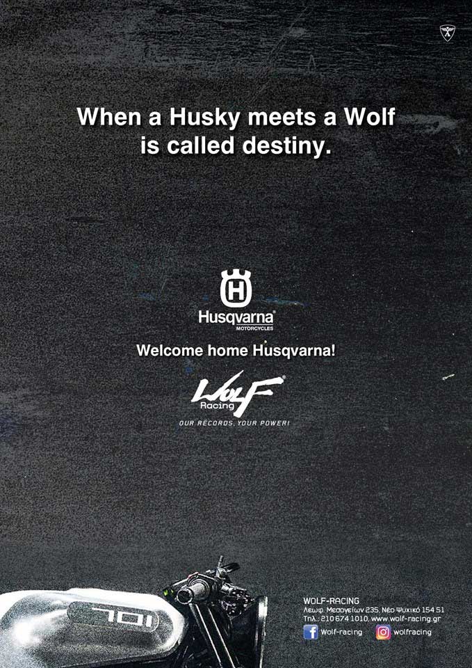 Η Wolf Racing γνωστή στον χώρο των αγώνων, με τεράστια εμπειρία, γνώση και με πάρα πολλά ρεκόρ, είναι ειδική στο να βελτιώνει κάθε μοτοσυκλέτα, είτε για απλή χρήση, είτε για αγωνιστική, ενώ ήδη συμμετέχει στους αγώνες Supermoto που γίνονται στην Ελλάδα, με ένα Husqvarna!