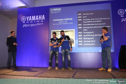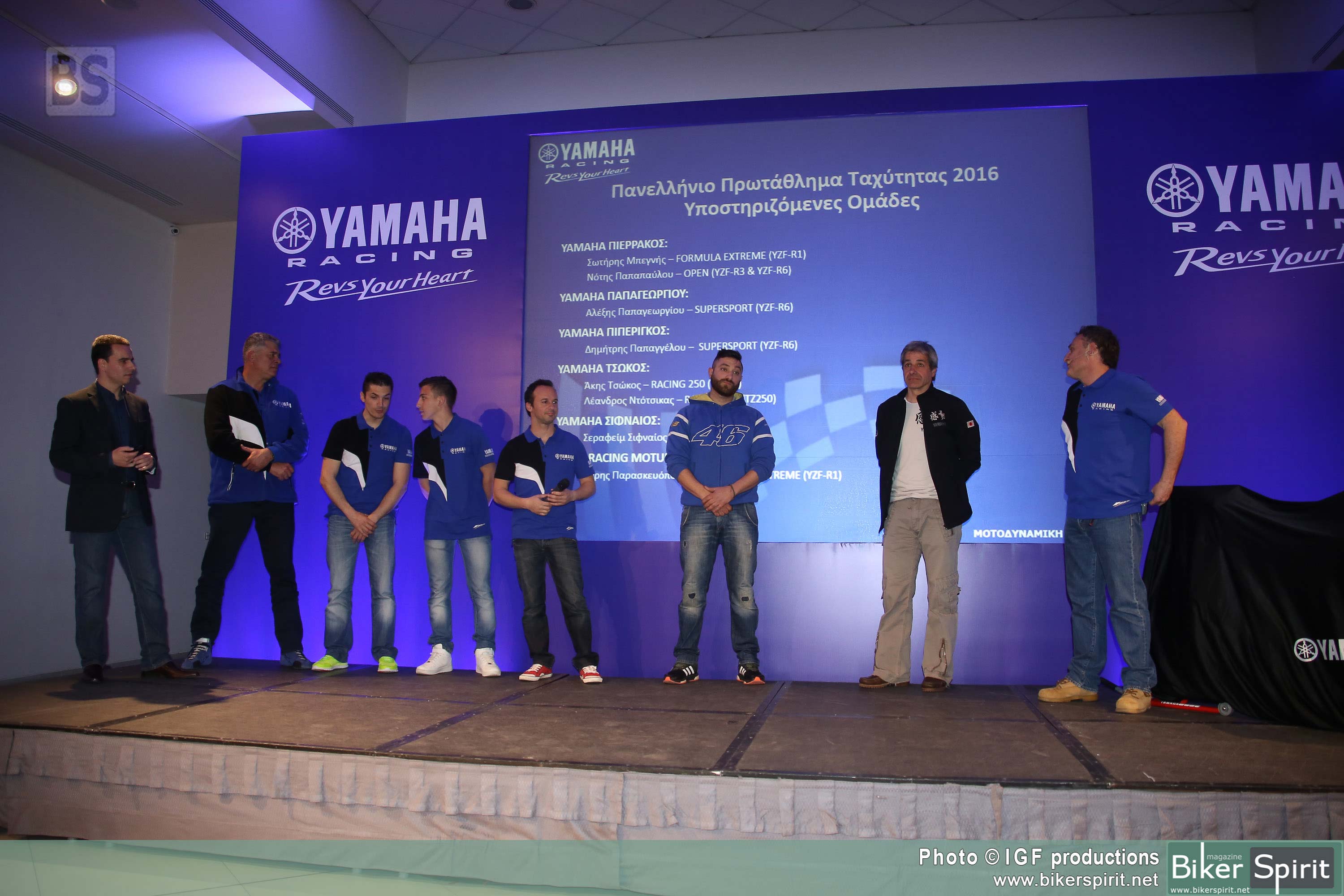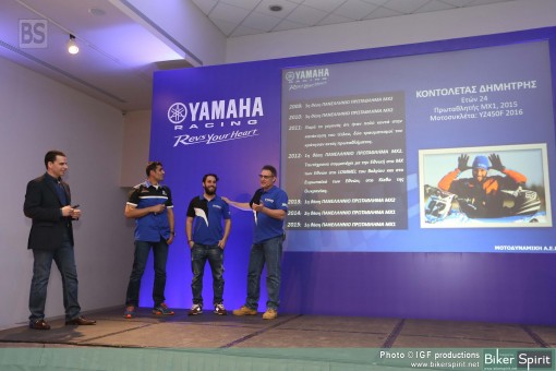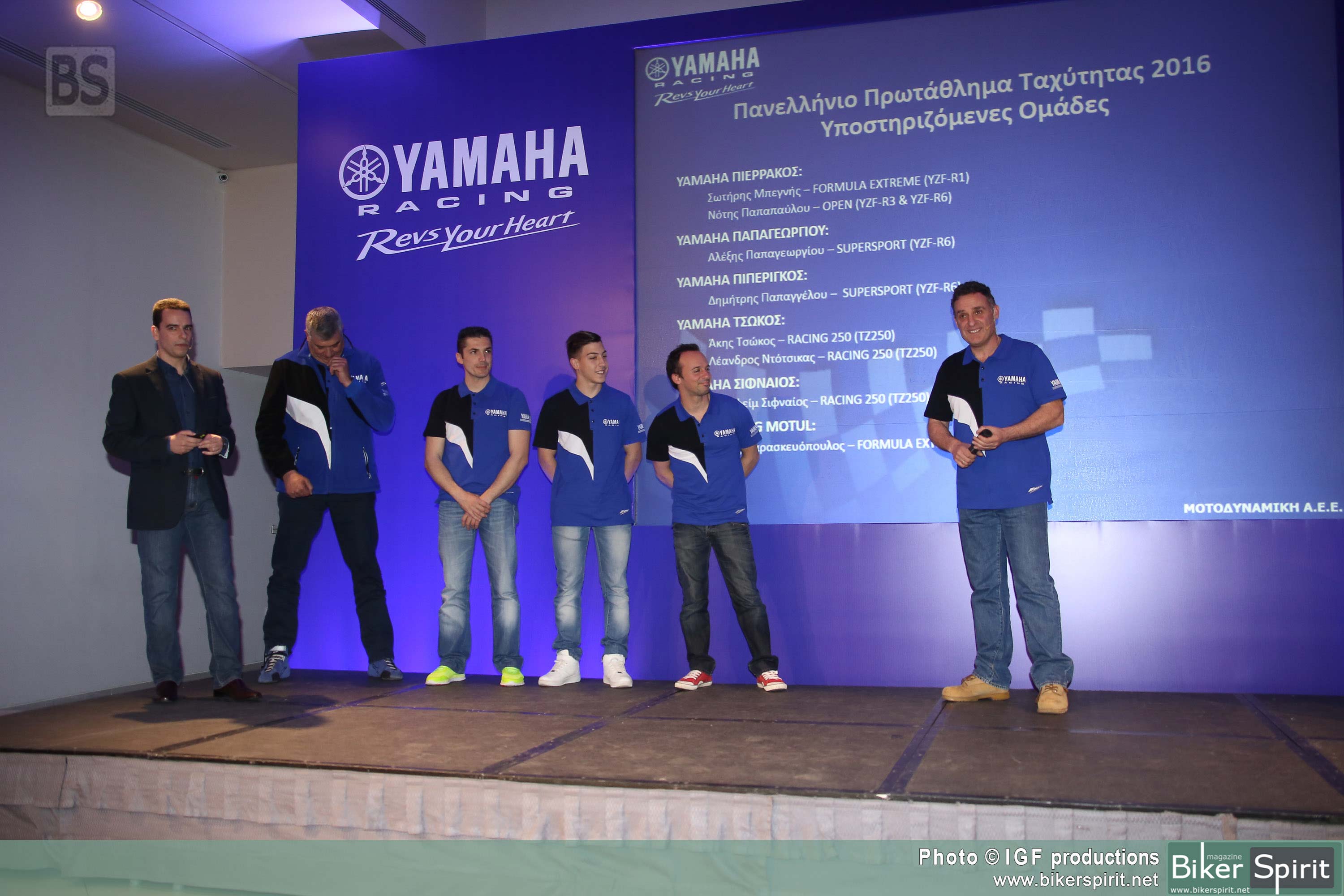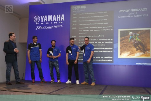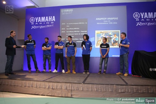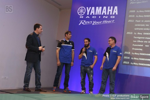 Μετά την παρουσίαση των παγκόσμιων επιτυχιών της Yamaha , έγινε παρουσίαση των διακρίσεων του 2015 στην Ελλάδα, και με την παρουσίαση των οδηγών που έφεραν αυτές τις επιτυχίες στην Yamaha.