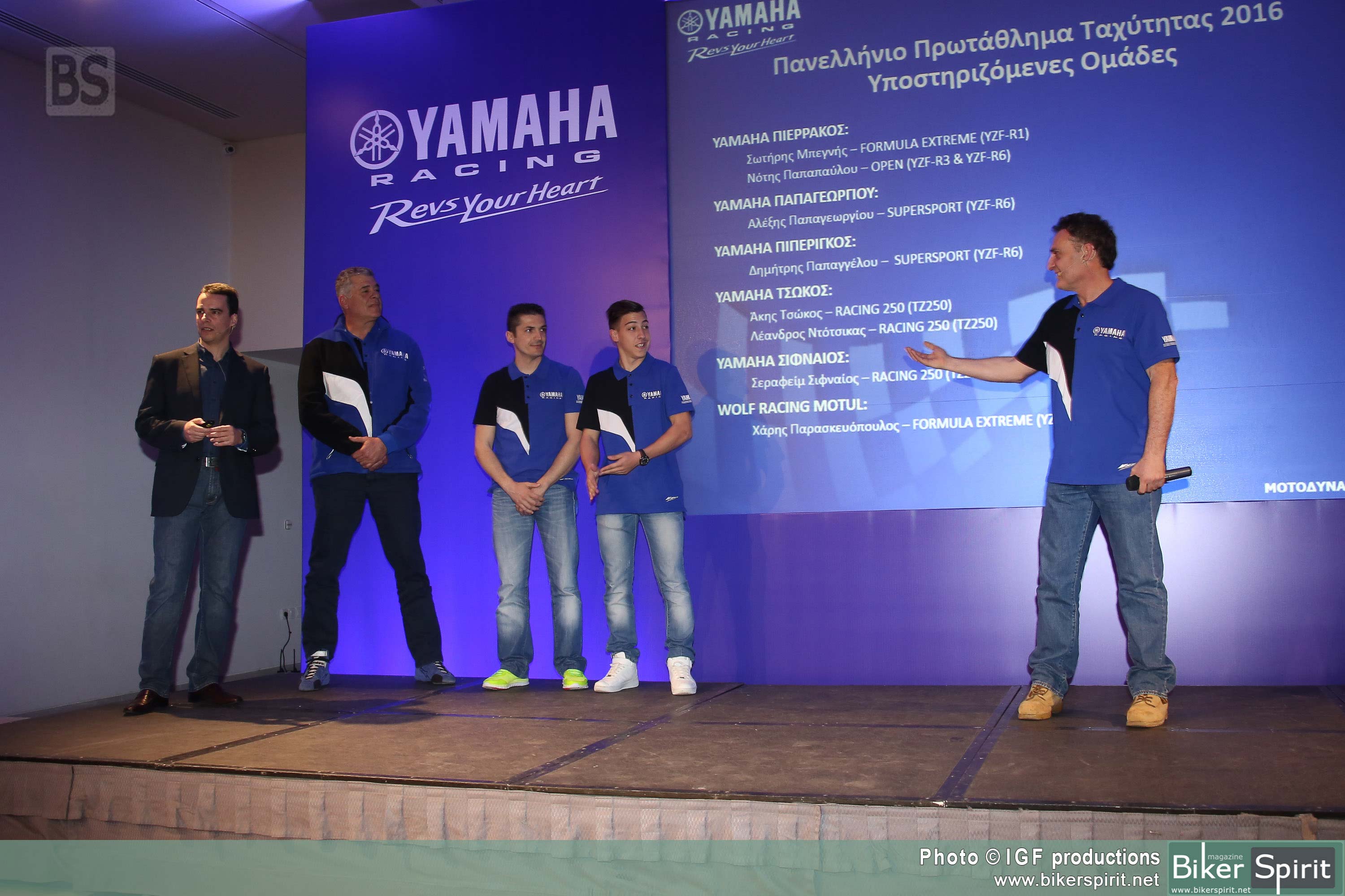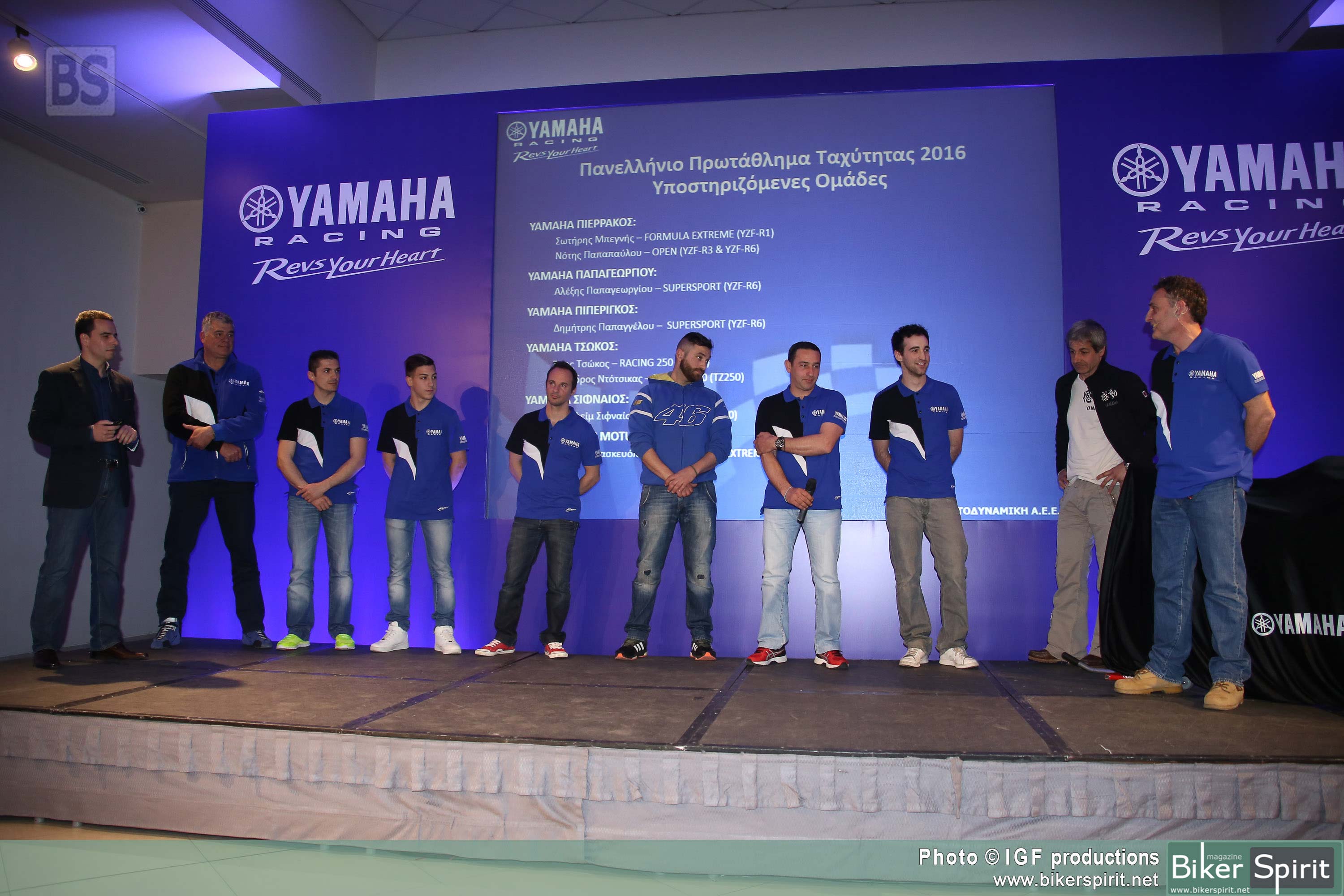 Η Yamaha ΜΟΤΟΔΥΝΑΜΙΚΗ παρουσίασε την Παρασκευή 26 Φεβρουαρίου 2016, το απόγευμα σε μια εντυπωσιακά όμορφη εκδήλωση με καλεσμένους τους ανθρώπους της Yamaha, οδηγούς και φίλους και τους ανθρώπους των Μέσων Μαζικής Ενημέρωσης, τους αγωνιζόμενους που θα πάρουν μέρος το 2016 με μοτοσυκλέτες ΥΑΜΑΗΑ στα πρωταθλήματα Motocross, Quad, Enduro, Rally Raid και Ταχύτητας .