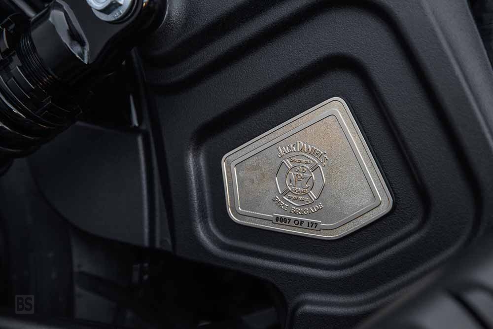 Κάπως περίεργο, που η μοτοσυκλέτα δεν εμπνέονται από το περίφημο ασπρόμαυρο λογότυπο της εταιρείας, αλλά το χρυσό και το μαύρο του πυροσβεστικού σταθμού του Jack Daniel.