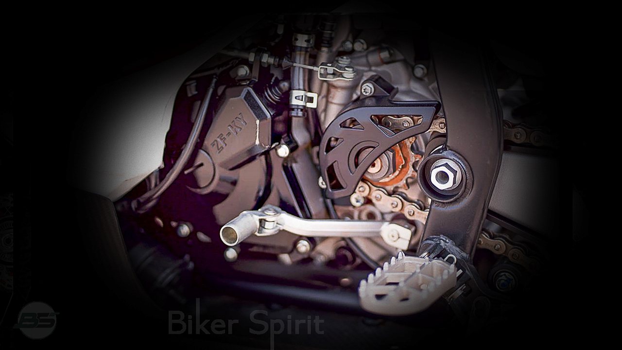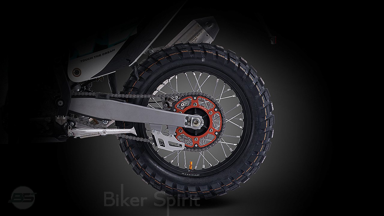 Ο μονοκύλινδρος, τετραβάλβιδος κινητήρας με τους δύο επικεφαλής εκκεντροφόρους, έχει αποδείξει την αξιοπιστία και την αποτελεσματικότητά του στα πιο δύσκολα τερέν. Η απόδοση φτάνει τους 42 ίππους και τα 35Nm ροπής, με τη δύναμη να είναι προοδευτικά κατανεμημένη σε όλο το φάσμα των στροφών. Η προστατευτική ποδιά στο κάτω μέρος της είναι κατασκευασμένη από ανθρακονήματα για μέγιστη προστασία και ελαχιστοποίηση του βάρους.