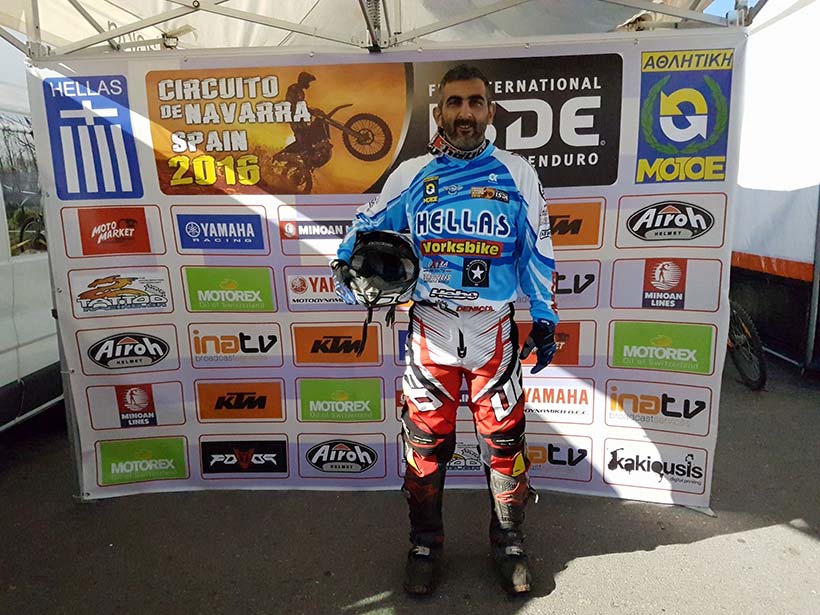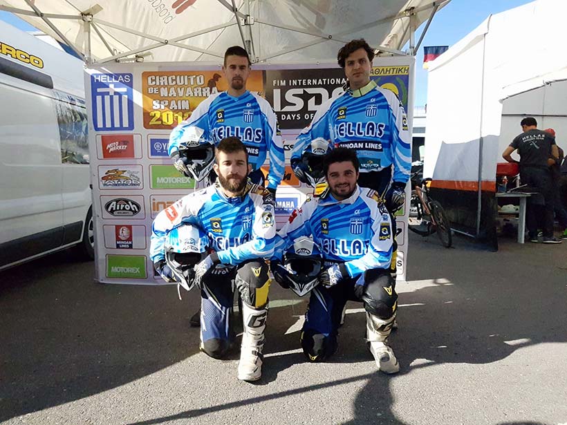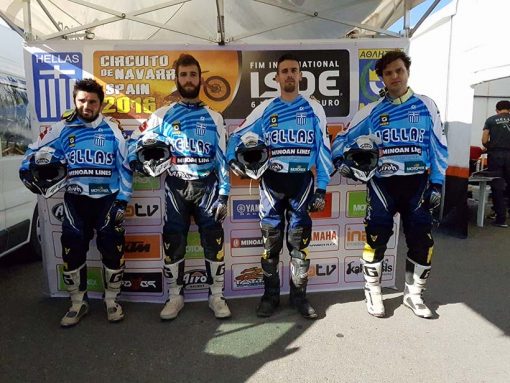 Η Ελληνική Εθνική ομάδα κατέκτησε την 11 θέση στην κατηγορία World Trophy στο International Six Days Enduro 2016 (ISDE) που έγινε στην Navarra της Ισπανίας.