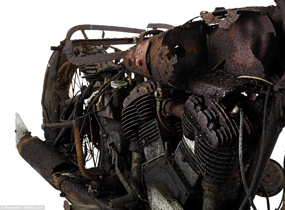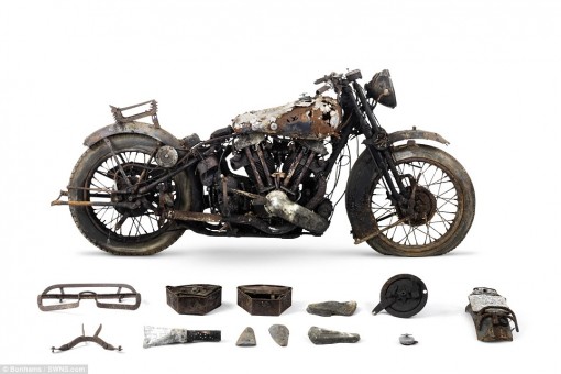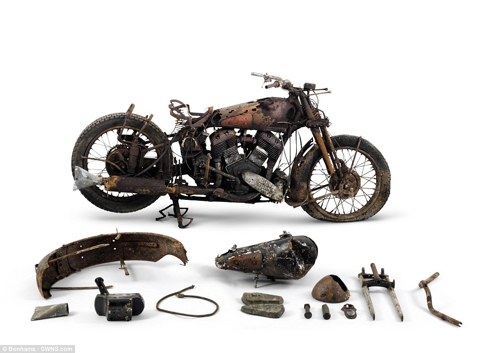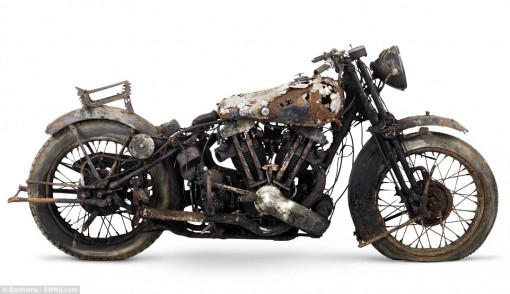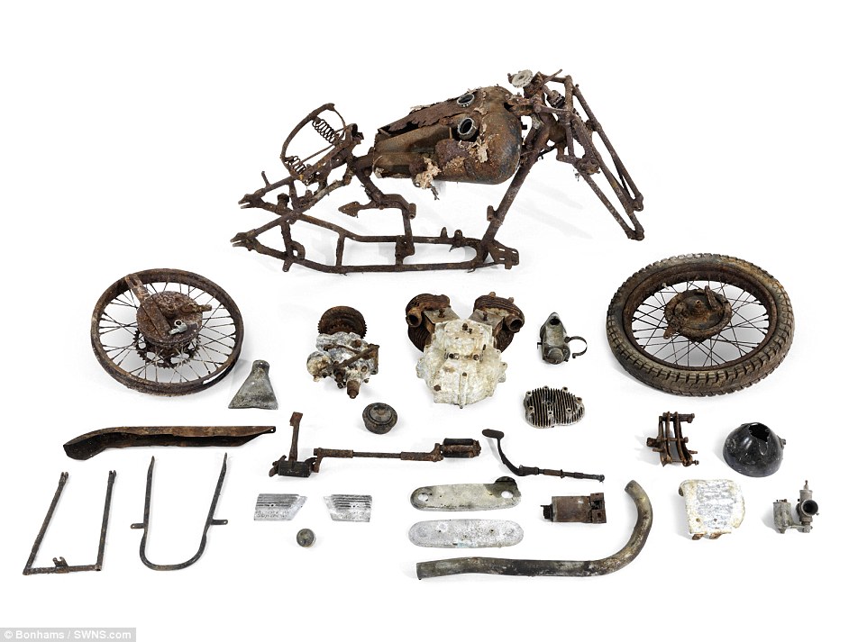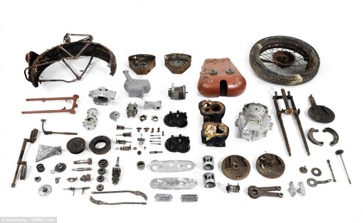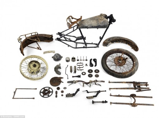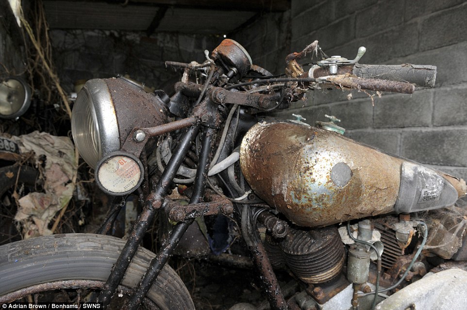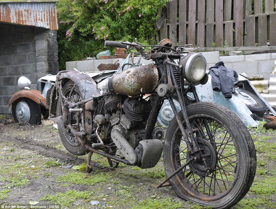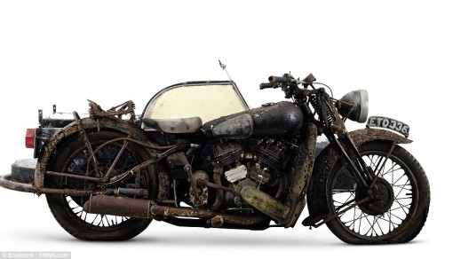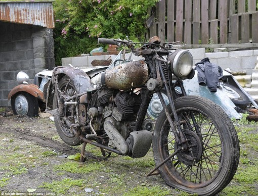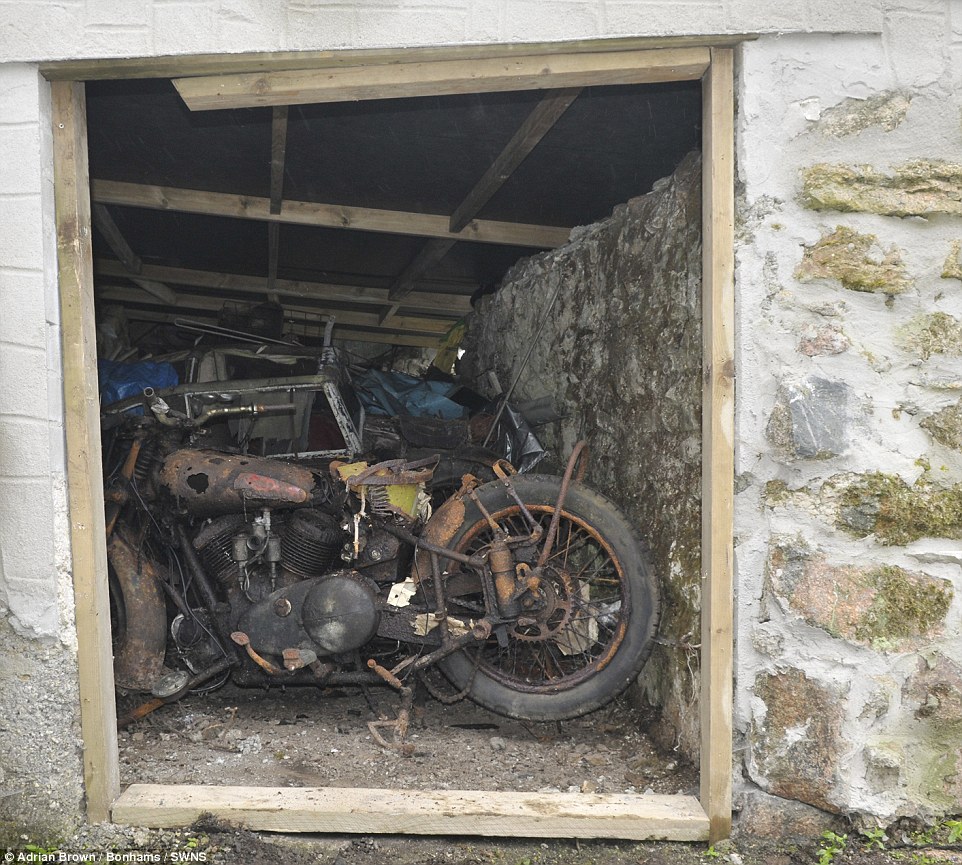 Οι μοτοσικλέτες βρέθηκαν σε έναν αχυρώνα στο Bodmin Moor της Κορνουάλης στο Ηνωμένο Βασίλειο θαμμένες κάτω από πολύ σκόνη, παλιά εξαρτήματα μηχανών και οικιακών συσκευών”.