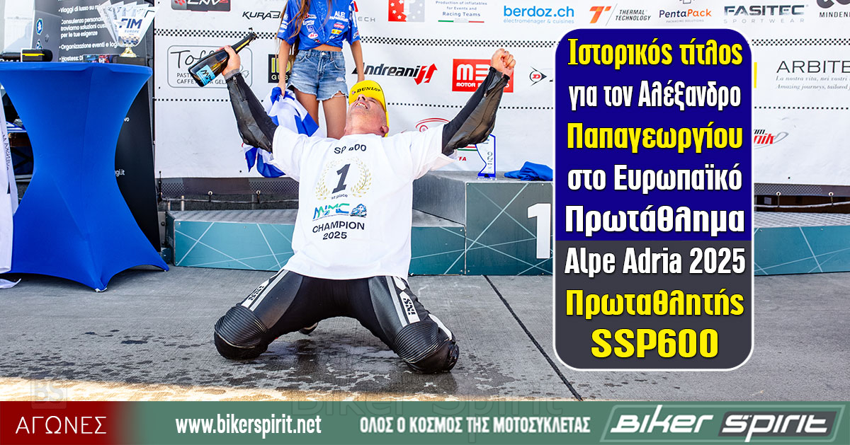 Ο Αλέξανδρος Παπαγεωργίου κατέκτησε το Ευρωπαϊκό Πρωτάθλημα Alpe Adria 2025 στην κατηγορία SSP600, γράφοντας ιστορία ως ο πρώτος Έλληνας αναβάτης που πετυχαίνει αυτό το επίτευγμα. Με αυτόν τον τίτλο, ο «Alex75» ανεβάζει τον αριθμό των πρωταθλημάτων του σε εννέα.