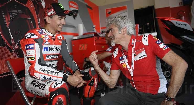 Jorge Lorenzo: «Δεν ήταν ακριβώς έτσι. Κατά τη διάρκεια της καραντίνας, είχα ένα τηλεφώνημα από τον Gigi Dall’Igna [Γενικός Διευθυντής, Ducati Corse] για να μου ευχηθεί χρόνια πολλά. Μιλήσαμε για προσωπικά θέματα, για την οικογένεια και για τέτοια πράγματα, και στο τέλος της συνομιλίας τον ρώτησα, από περιέργεια για το μέλλον της ομάδας και των αναβατών.