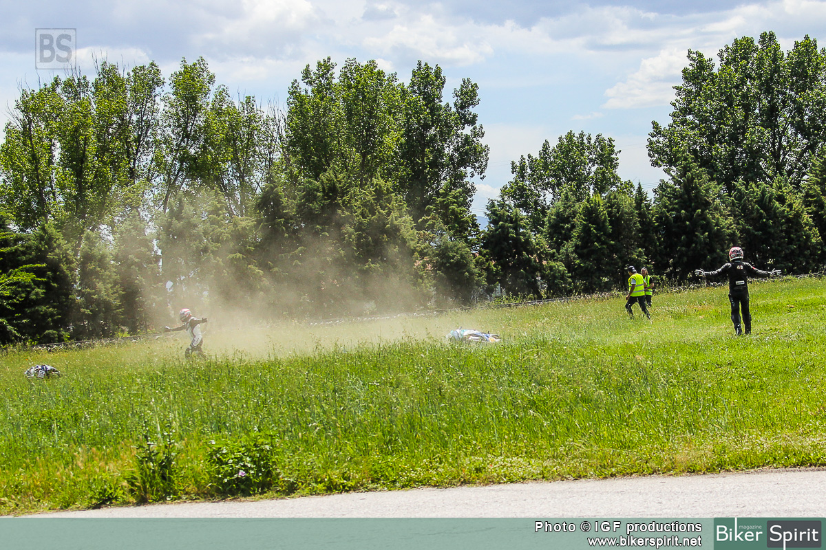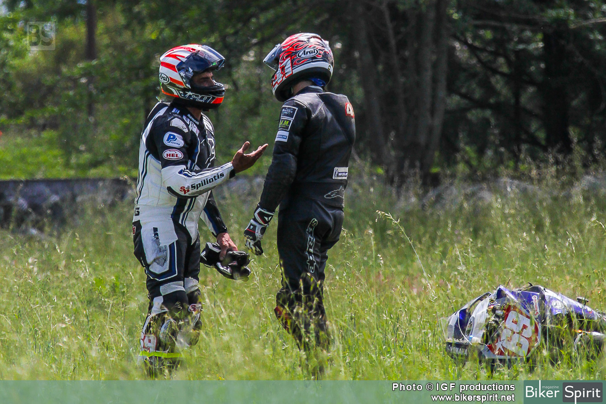 Στην μεγάλη κατηγορία είχε πτώση ο Στέφανος Καντιμοίρης και ο Μιχάλης Σπηλιώτης στην πρώτη στροφή της πίστας αμέσως μετά την εκκίνηση για τον 2ο αγώνα στις Σέρρες.