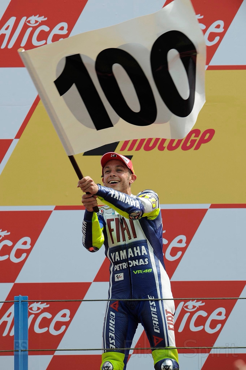 Η εικόνα του Rossi να πανηγυρίζει την 100ή νίκη με ένα μεγάλο πανό που απαριθμούσε τις προηγούμενες 99, έμεινε χαραγμένη στο συλλογικό υποσυνείδητο των φίλων του MotoGP.