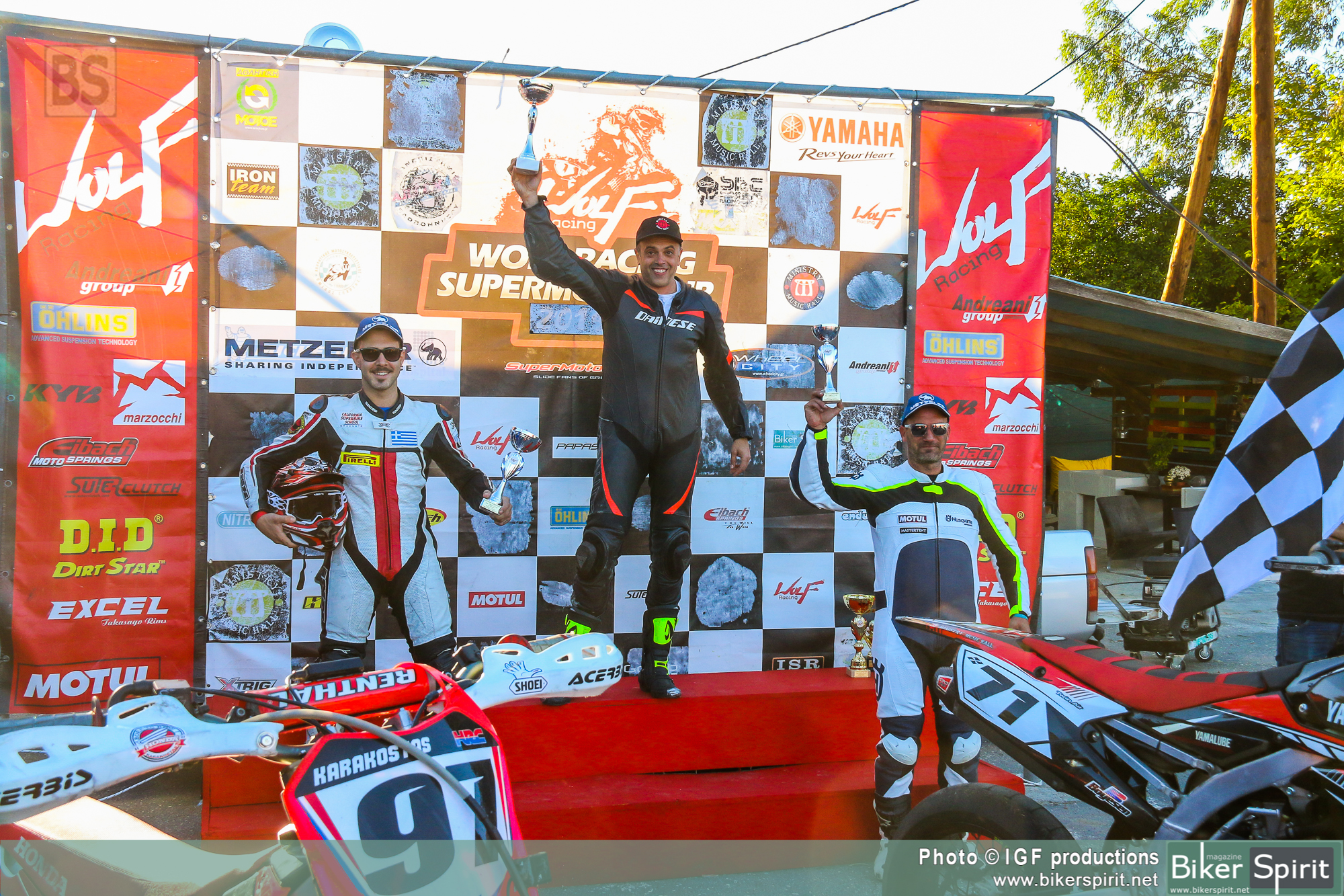 Ο Νίκος Καρακώστας τερμάτισε δεύτερος στον αγωνα και στην τελική βαθμολογία του κυπέλλου Wolf Supermoto, ενώ το βάθρο της ημέρα συμπλήρωσε ο Γιώργος Παρασκευάς, και τρίτος στην βαθμολογία! Ο Σταύρος Κρεμάλας ειχε πτώση στον 3ο γύρο ευτυχώς χωρίς να τραυματιστεί και εγκατέλειψε.