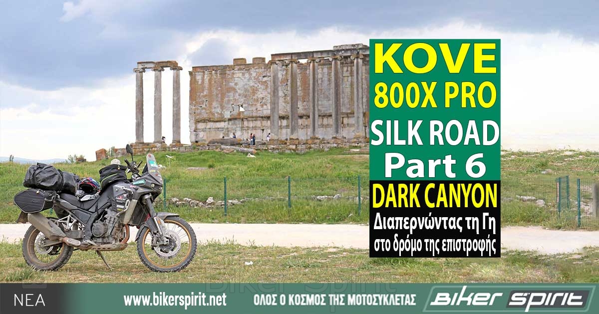 “Με την επιστροφή στην Τουρκία, το KOVE SILK ROAD μπήκε στην τελική ευθεία. Καθοδόν για το αιγαιοπελαγίτικο λιμάνι Cesme, η ασυγκράτητη KOVE 800X PRO έμελλε να πραγματοποιήσει τρεις ενδιαφέρουσες στάσεις: στο θεαματικό φαράγγι Dark Canyon, στον αρχαιολογικό χώρο Aizanoi και στον πάλλευκο ασβεστολιθικό λόφο Pamoukkale…