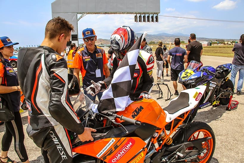 Στους αγώνες της Κυριακής στην κατηγορία ΝΕΩΝ Σκούρτας και Μπαξίσογλου, έχοντας πολύ καλό ρυθμό και βελτιώνοντας τους χρόνους τους, έφεραν τα δύο KTM RC390 στη δεύτερη και τρίτη θέση του βάθρου.