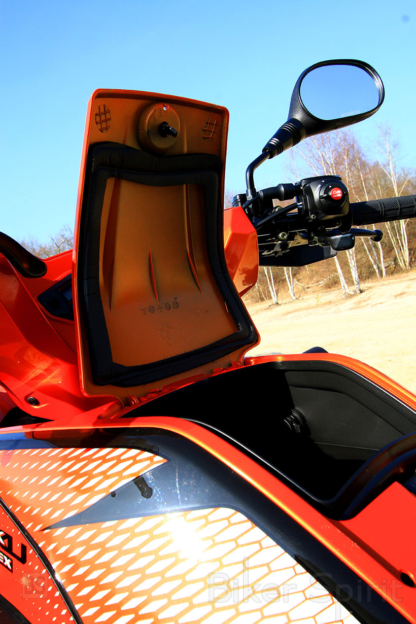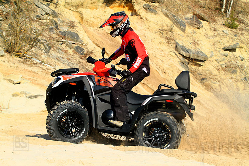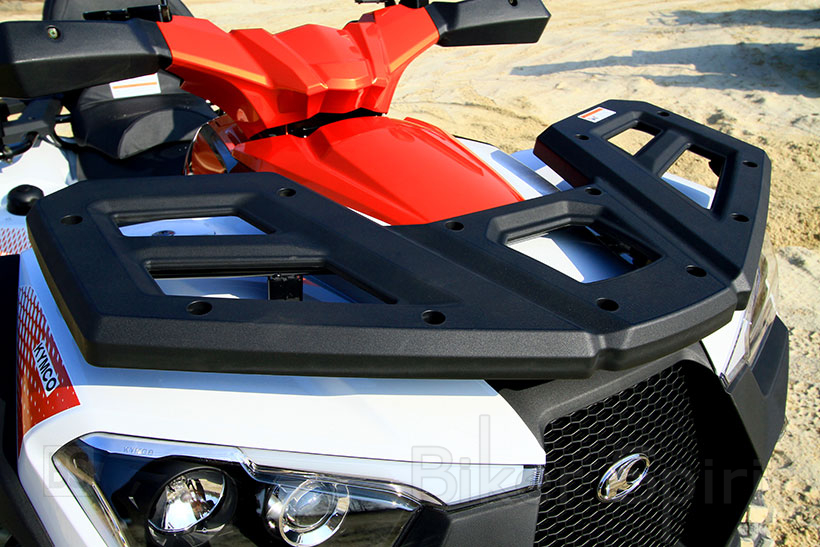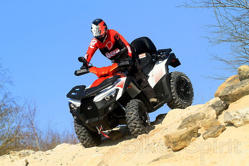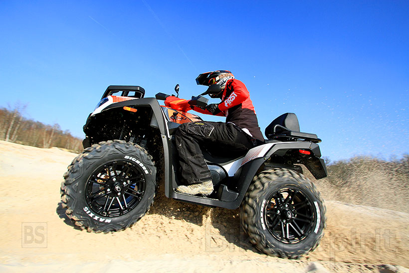 Oι αναρτήσεις είναι ανεξάρτητες σε όλους τους τροχούς, με την αντιστρεπτική δοκό να επιτρέπει τη «στενή» επαφή των τροχών με το έδαφος κάτω από κάθε συνθήκη. Με το 17λιτρο δοχείο καυσίµου και τις πολλαπλών χρήσεων σχάρες φόρτωσης αποτελεί ένα µοναδικό όχημα δουλειάς και διασκέδασης, έτοιμο να προσφέρει μοναδικές εμπειρίες.