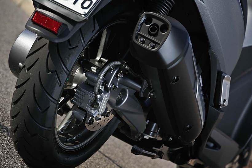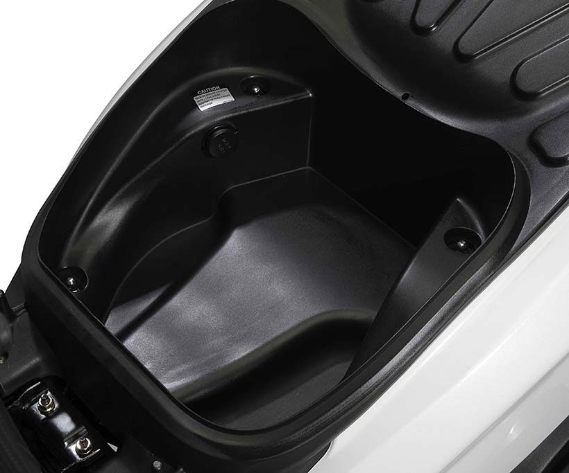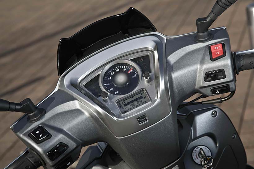 Στα ύψη και η χρηστικότητα, με τις τρεις ψηφιακές οθόνες, την παροχή ρεύματος 12V για φόρτιση κινητού ή χρήση GPS, το επίπεδο πάτωμα, τη στάνταρ σχάρα αποσκευών, την ύπαρξη πλαϊνού και κεντρικού σταντ, το άγγιστρο ανάρτησης αντικειμένων και τους χώρους για αρκετά μικροαντικείμενα κάτω από τη σέλλα και το τιμόνι!