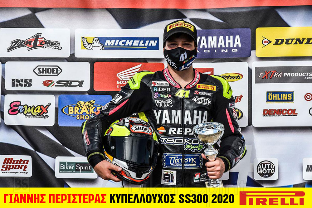 Πρωταθλητής της SUPERSPORT-300 ο Γιάννης Περιστεράς για πρώτη του φορά, με 2 νίκες στους 4 αγώνες και δυο δεύτερες θέσεις, 1 διπλή pole position και 4 βάθρα συνολικά στους 4 αγώνες της σεζόν!
