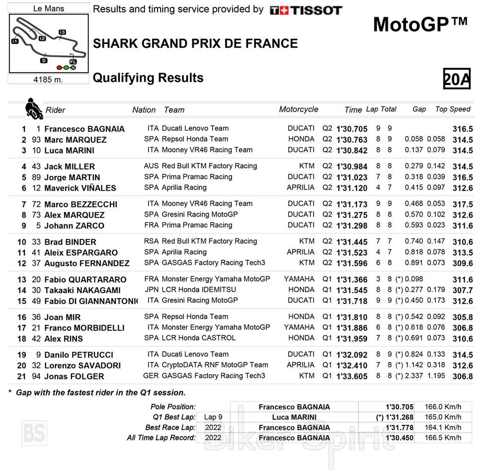 Ο Marc Marquez θα ξεκινήσει από τη δεύτερη θέση στο αρχικό πλέγμα για τον αγώνα σπριντ και για τον αγώνα της Κυριακής στο Γαλλικό GP.