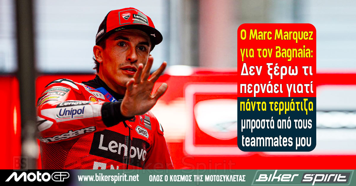 O Marc Marquez για τον Bagnaia: «Δεν ξέρω τι περνάει, γιατί πάντα τερμάτιζα μπροστά από τους teammates μου»