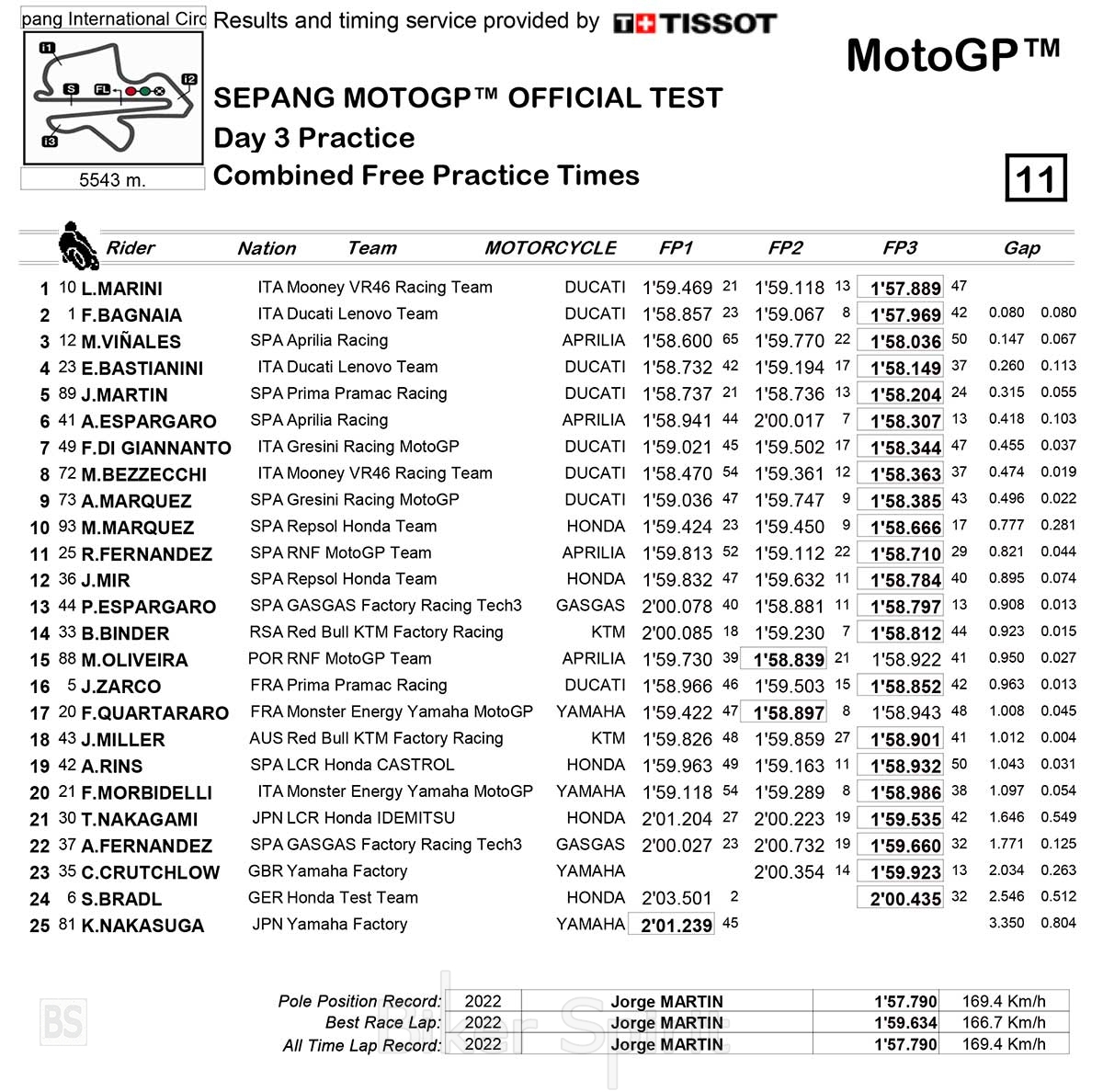 Ο Marc ήταν μόλις 0,033 δευτερόλεπτα πίσω από τον καλύτερο χρόνο το πρωί. «Οδήγησα πιο σταθερά εκεί, ένιωσα καλά, δουλέψαμε καλά. Οι χρόνοι γύρων ήταν εντάξει, αλλά ακόμα πολύ μακριά από τους 5 κορυφαίους. Και μετά άρχισαν ξανά τα πειράματα… Μετά χάλασε ο ρυθμός».
