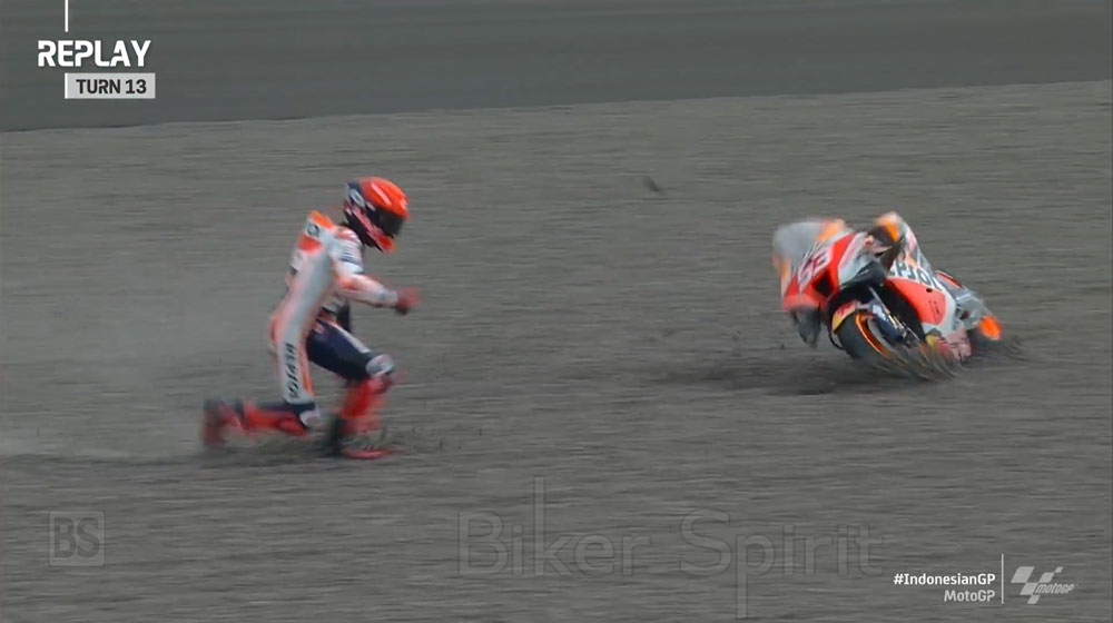 Δυο πτώσεις είχε ο Ισπανός της Honda, Marc Marquez στην προσπάθειά του στο Q1, όπου πίεσε στο μέγιστο το RCV του, για να μπορέσει να περάσει στο Q2.