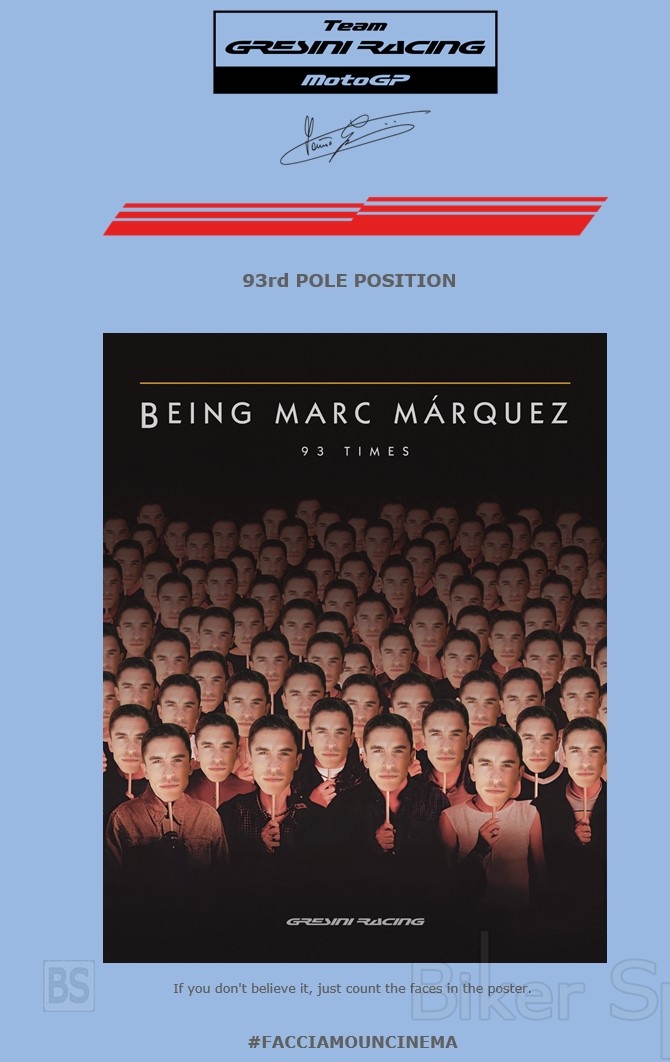 H Gresini συνεχίζοντας την παρουσίαση της στα Δελτία Τύπου της που περιστρέφονται γύρω από τον κινηματογράφο δημοσίευσε αυτή την αφίσα με αφορμή την pole position του Marc Marquez