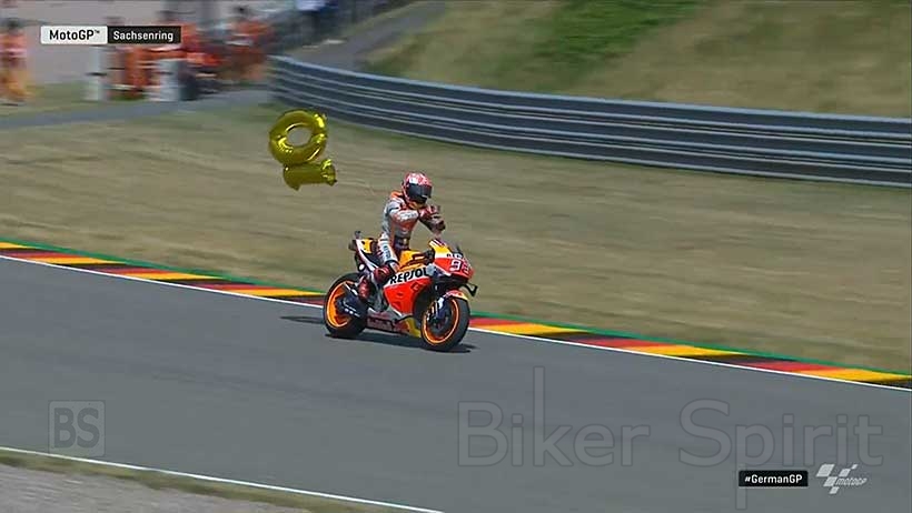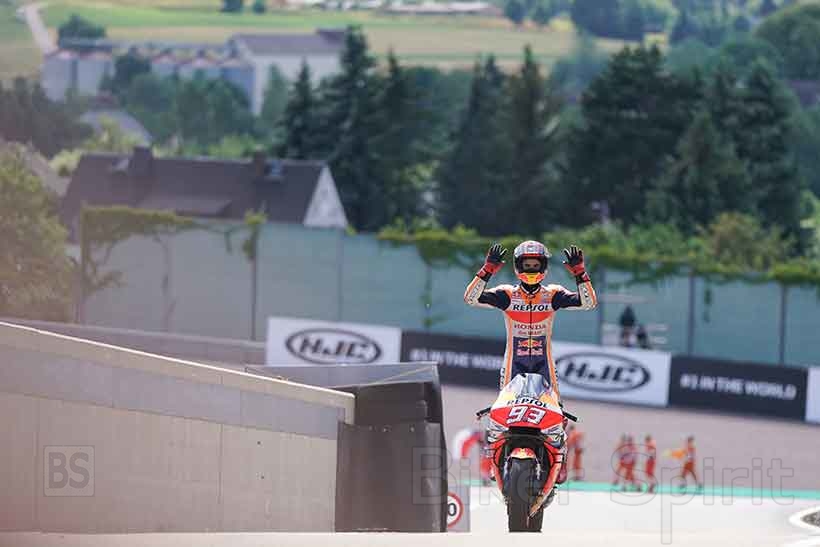 Ο Marc Márquez φαίνεται χαρούμενος στο Sachsenring, όπου δεν έχει σταματήσει να κερδίζει από το 2010, με μια νίκη στα 125cc, δύο στη Moto2 και επτά στο MotoGP, όλες συνεχόμενες.
