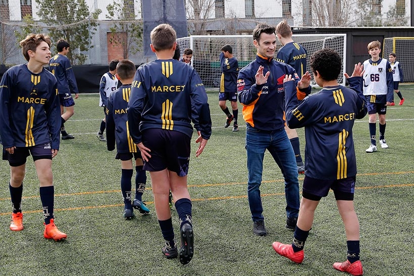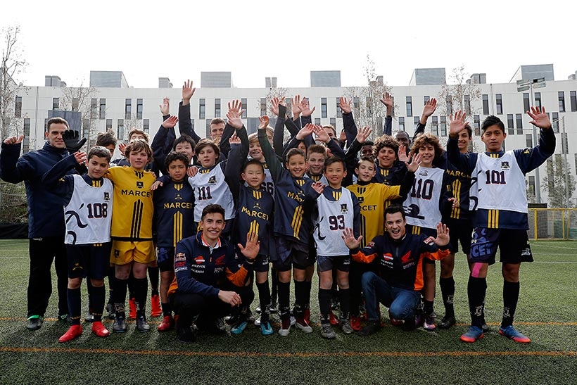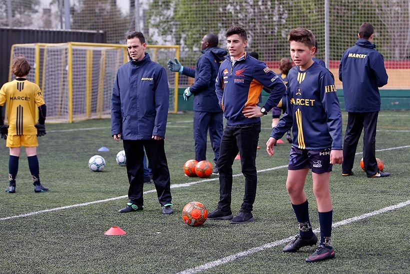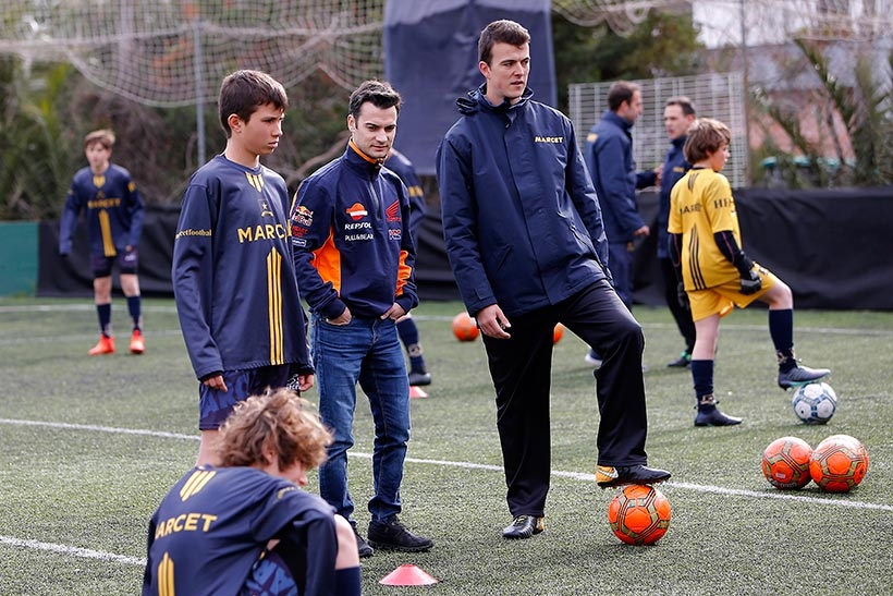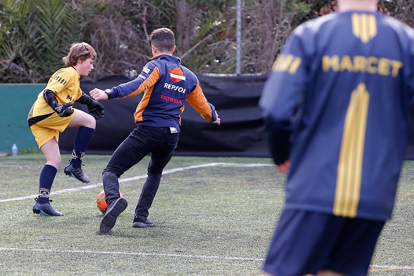 Ο Marc Márquez και ο Dani Pedrosa, που τερμάτισαν στη δεύτερη και πέμπτη θέση την περασμένη Κυριακή στο Grand Cat Prix της Καταλονίας, έλαβαν μέρος σε προπόνηση ποδοσφαίρου με νέα ταλέντα – Πρώτα στο ρόλο προπονητών και στη συνέχεια ως παίκτες, σημειώνοντας ακόμη και δύο γκολ.