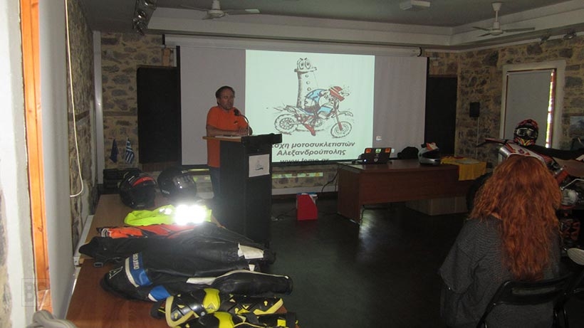 Ο κ. Κριτού κράτησε αμείωτο το ενδιαφέρον των παιδιών καθ’ όλη τη διάρκεια της εκδήλωσης και στο τέλος τους δώρισε συλλεκτικά μπλουζάκια της Πανελλήνιας Συγκέντρωσης Μοτοσικλετιστών του 2009 στη Σαμοθράκη ενώ δύο τυχεροί πήραν δώρο από ένα κράνος προσφορά του καταστήματος του κ. Σίμου Μακαρώνη από Αλεξανδρούπολη.