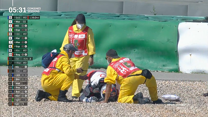 Ο Jorge Martin είχε μια βίαιη πτώση στην στροφή 7 με αποτέλεσμα να τραυματιστεί και να βγει κόκκινη σημαία 4 λεπτά πριν το τέλος του FP3.