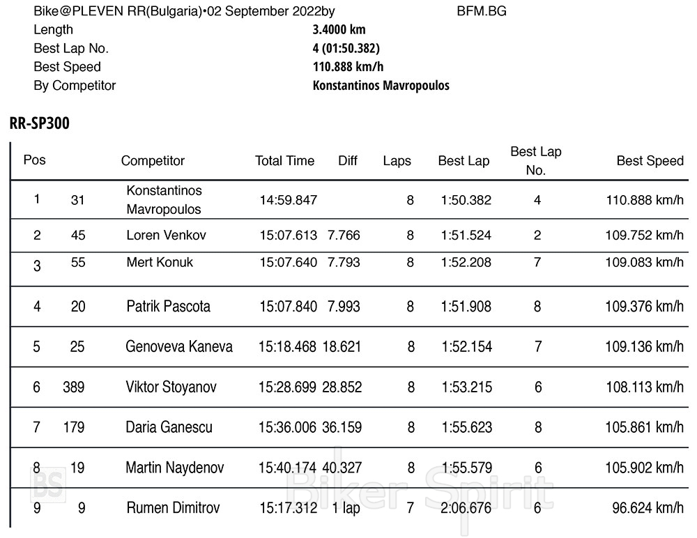 Ο Κωνσταντίνος Μαυρόπουλος, συμμετείχε το Σαββατοκύριακο 3 και 4 Σεπτεμβρίου στον διπλό αγώνα (9ος και 10ος ) του Βαλκανικού Πρωταθλήματος Ταχύτητας BMU στην πίστα Pleven , στην Βουλγαρία στην κατηγορία SSP300.