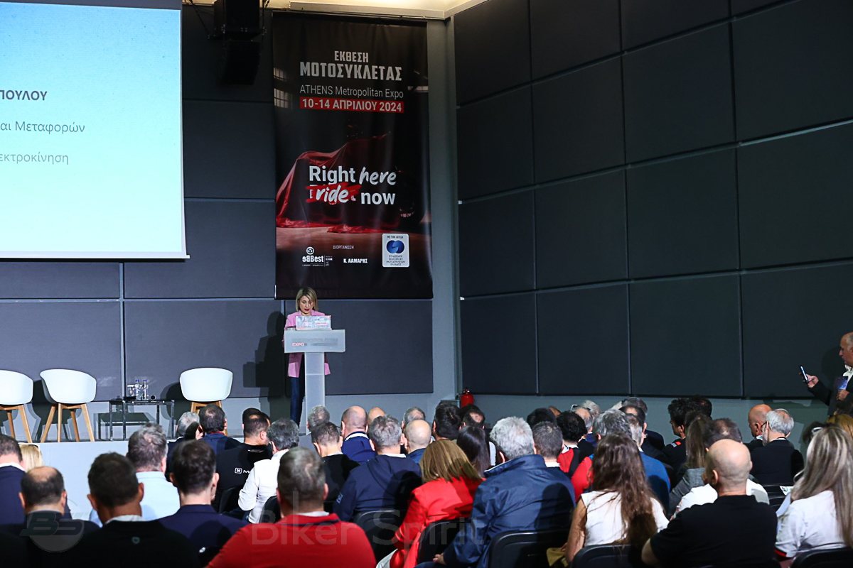 Τα εγκαίνια της έκθεσης έγιναν στο πλαίσιο του 1ου Συνεδρίου «Sustainable Ride» με θέμα «Το μέλλον της μοτοσυκλέτας: Βιώσιμη και ασφαλής κινητικότητα», με την παρουσία διακεκριμένων ομιλητών. Την κεντρική εναρκτήρια ομιλία του συνεδρίου πραγματοποίησε εκπροσωπώντας την Κυβέρνηση, ως καθ’ ύλην αρμόδια η Υφυπουργός Μεταφορών κ. Χριστίνα Αλεξοπούλου, η οποία μεταξύ άλλων τόνισε: