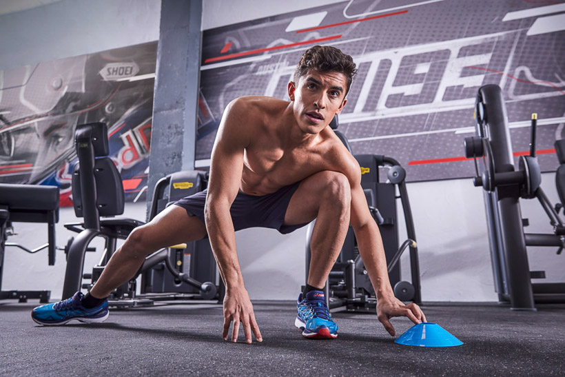 Είναι σε θέση να τα επιτύχει όλα αυτά, κάνοντας πολλές διαφορετικές ασκήσεις ισορροπίας στο γυμναστήριο. «Η ισορροπία είναι ένας σημαντικός παράγοντας όπως και τα αντανακλαστικά, γιατί η μοτοσυκλέτα μπορείτε να κουνηθέι δύο ή τρεις φορές την ώρα που στρίβεις και το σώμα σου πρέπει να αντιδράσει γρήγορα. Η οδήγηση μιας MotoGP μοτοσυκλέτας απαιτεί πολλή δύναμη στον άνω κορμό, στους κοιλιακούς και στα πόδια, στην περιοχή προσαγωγών», εξηγεί ο Marc.