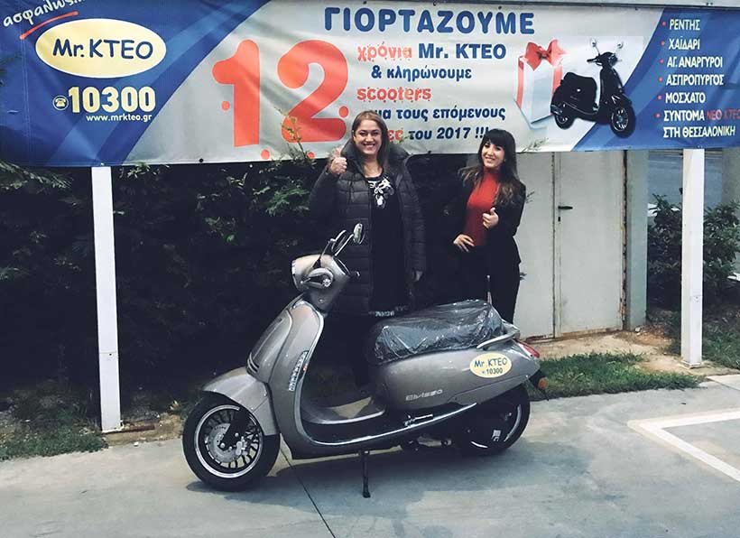 Θα ακολουθήσει μία ακόμα κλήρωση για το 2017 και αν θέλετε και εσείς να κερδίσετε ένα πανέμορφο scooter Gemini Eivissa 125, το μόνο που έχετε να κάνετε είναι να περάσετε τεχνικό έλεγχο μέχρι τα τέλη της χρονιάς σε κάποιο από τα καταστήματα του Mr KTEO σε Αττική ή Θεσσαλονίκη. Γιατί η εταιρεία γιορτάζει τα 12 χρόνια λειτουργίας της και δωρίζει ισάριθμα scooter, ένα κάθε μήνα και για όλους τους μήνες του 2017!