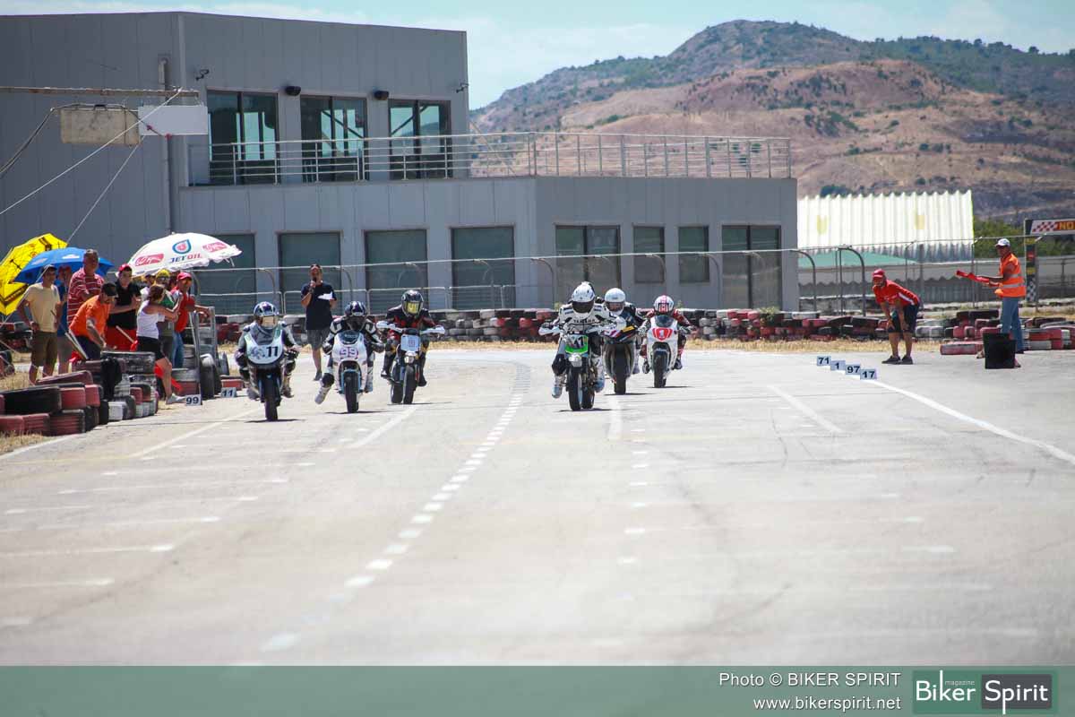 Πριν δοθεί η εκκίνηση και πάλι έκαναν πρόβα τα φώτα μιας και είχαν πολλές περιπέτειες με αυτό το θέμα. Η εκκίνηση δόθηκε και ο Χαβέλας έφυγε μπροστά στρίβοντας πρώτος μπροστά από τον Μίχα που όμως αμέσως στην δεύτερη στροφή πέρασε μπροστά. Ο Δημήτρης Καρακώστας έδειξε από την αρχή ότι ήταν αποφασισμένος να ανέβει στο βάθρο και έκανε επίθεση στον Χαβέλα στην μέση του πρώτου γύρου και πέρασε μπροστά και χωρίς να χάσει ευκαιρία έφτασε τον Μίχα στην ρόδα. Οι δυο τους άρχισαν γρήγορα να αποκτούν γρήγορο ρυθμό και γύρο με τον γύρο μεγάλωναν την διαφορά τους από τους υπόλοιπους.