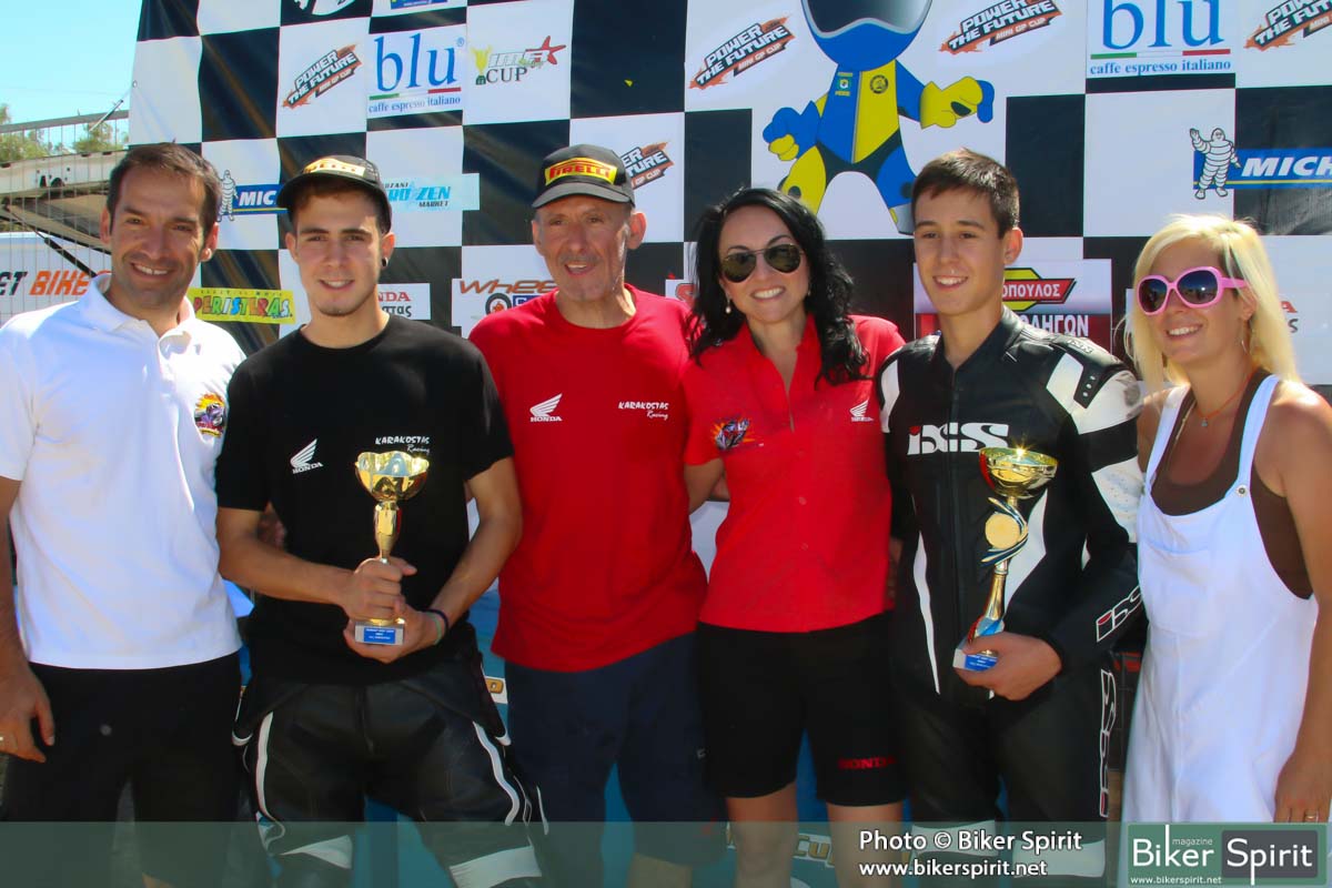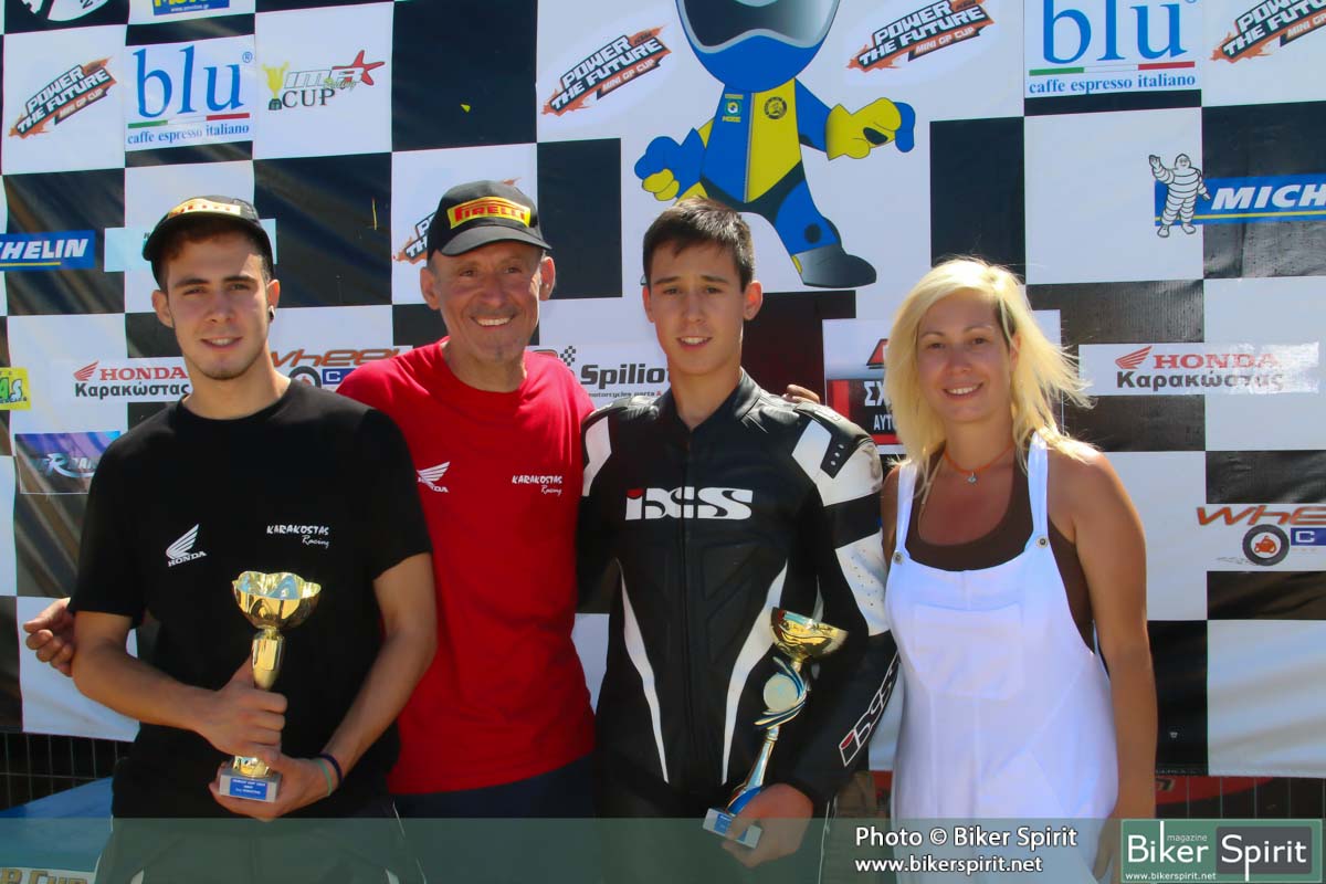 Στο βάθρο ανέβηκαν τελικά οι Θεοφάνης Μίχας, Δημήτρης Καρακώστας και Νίκος Καρακώστας, αλλά όπως ακούσαμε υπήρξε άλλη μια παρατυπία με τον νεαρό Θεοφάνη Μίχα που δεν πληρούσε τους όρους της ηλικίας, οπως έχουμε γράψει και στο πρώτο αρθρο για την κατηγορία MiniGP Senior . Ελπίζουμε αυτό να ξεκαθαρίσει και επίσημα γρήγορα και να μην σέρνετε μια κατάσταση χωρίς επίσημη πληροφόρηση όπως το έχουμε δει πολλές φόρες να γίνεται και να μην ξέρουμε πως θα είναι η βαθμολογία.