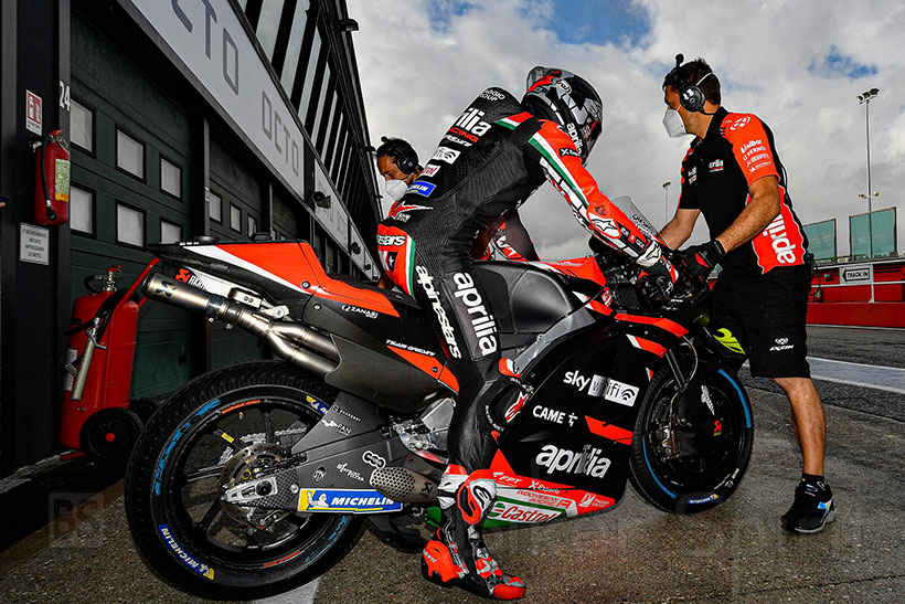 Στην Aprilia, ο Lorenzo Savadori, τώρα οδηγός δοκιμών, οδήγησε επίσης, μαζί με τον Maverick Viñales και τον Aleix Espargaró και δοκίμασαν νέα φτερά.